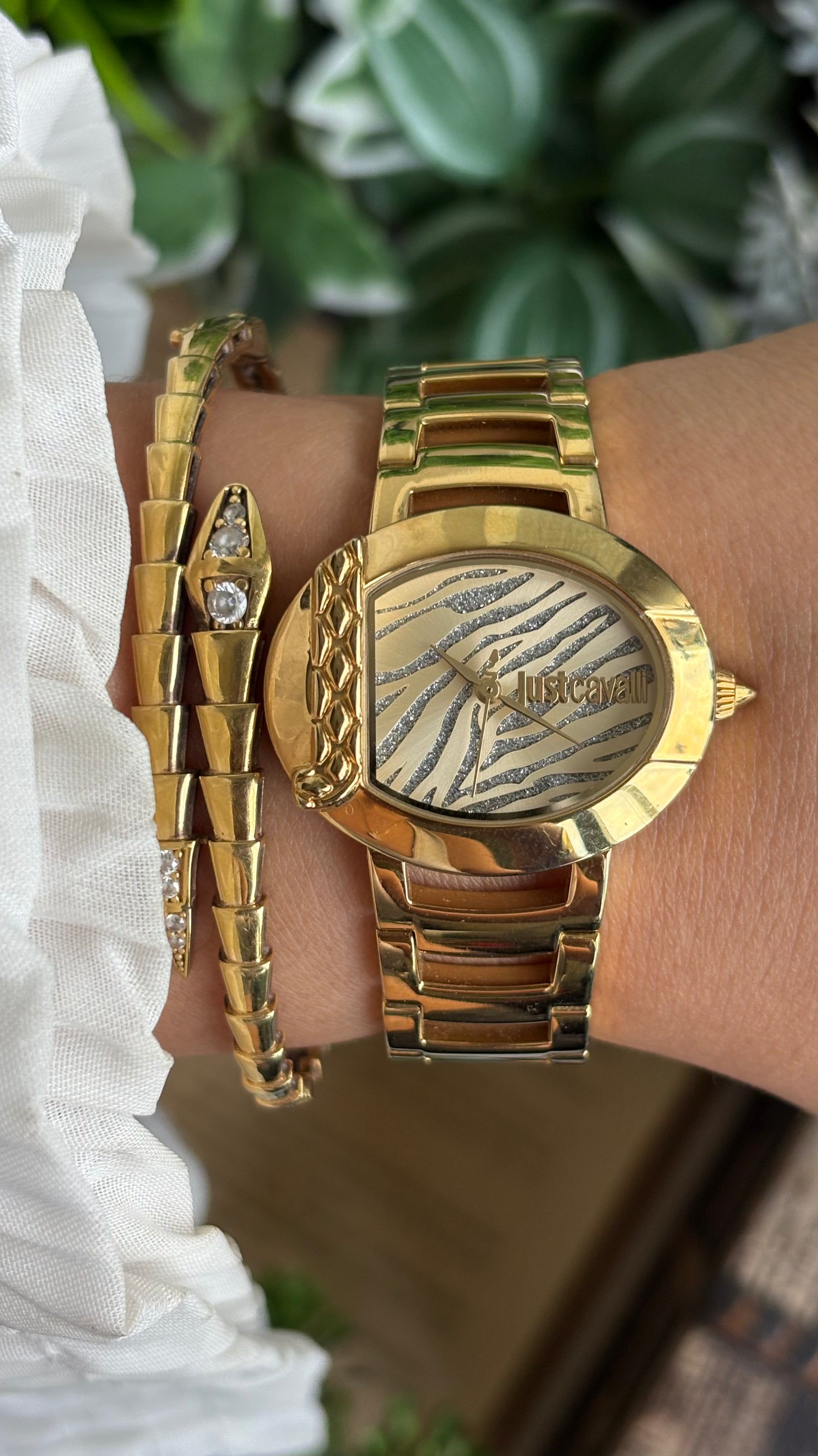 Extremely Rare Vintage Just Cavalli Half Moon Watch in Gold Tone