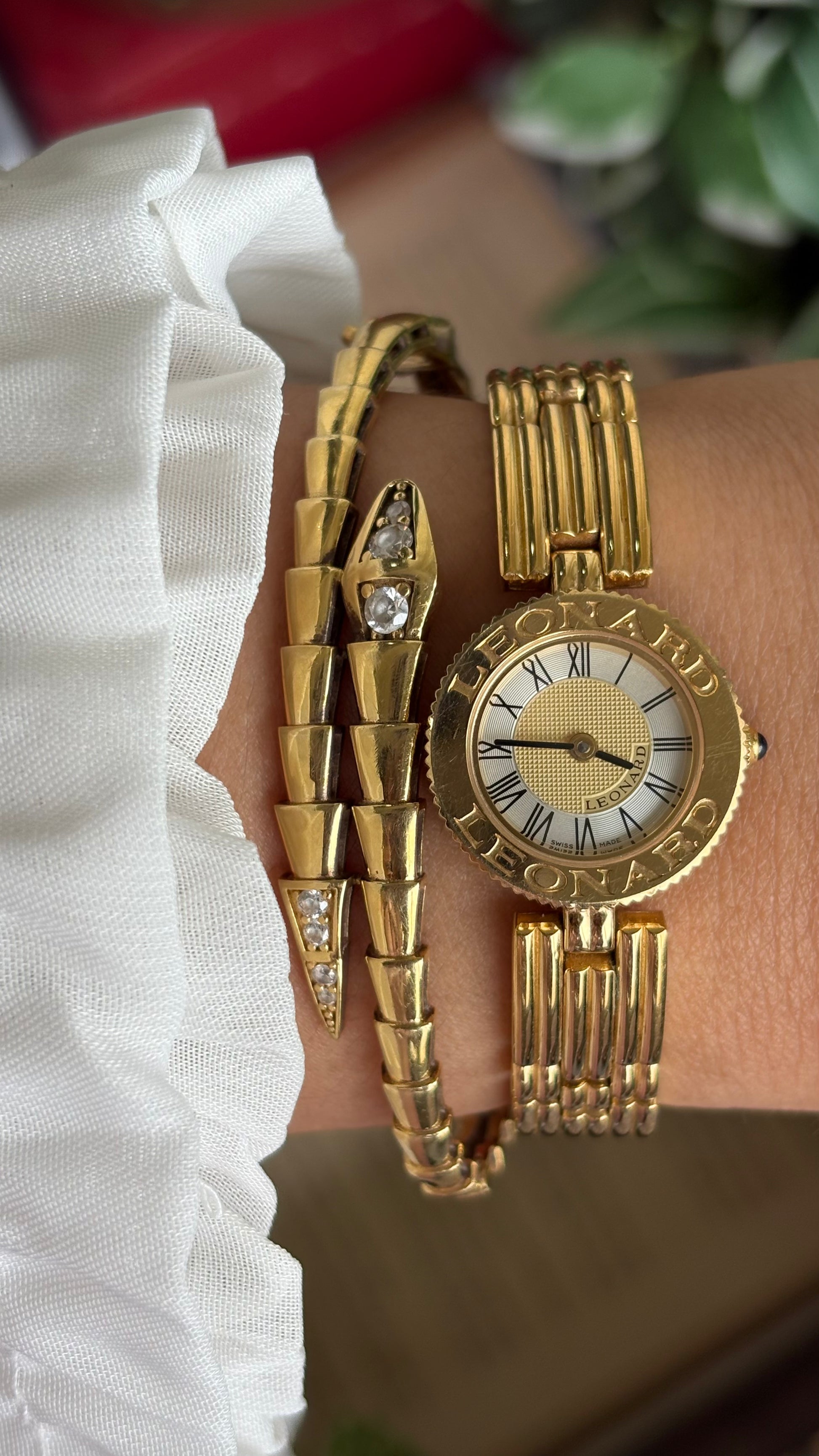 Vintage Leonard Swiss Designer’s Watch in Gold Tone Roman Dial