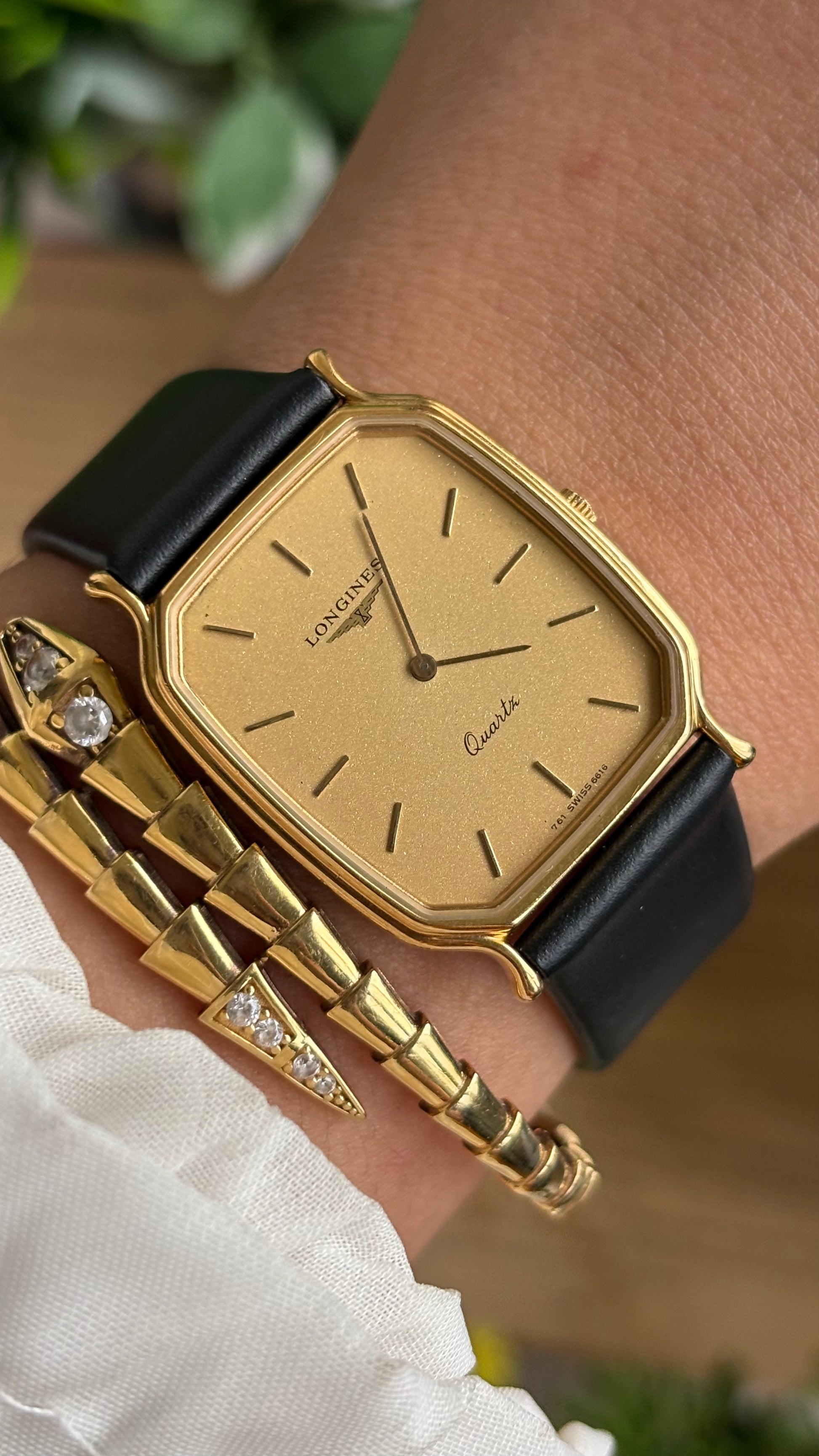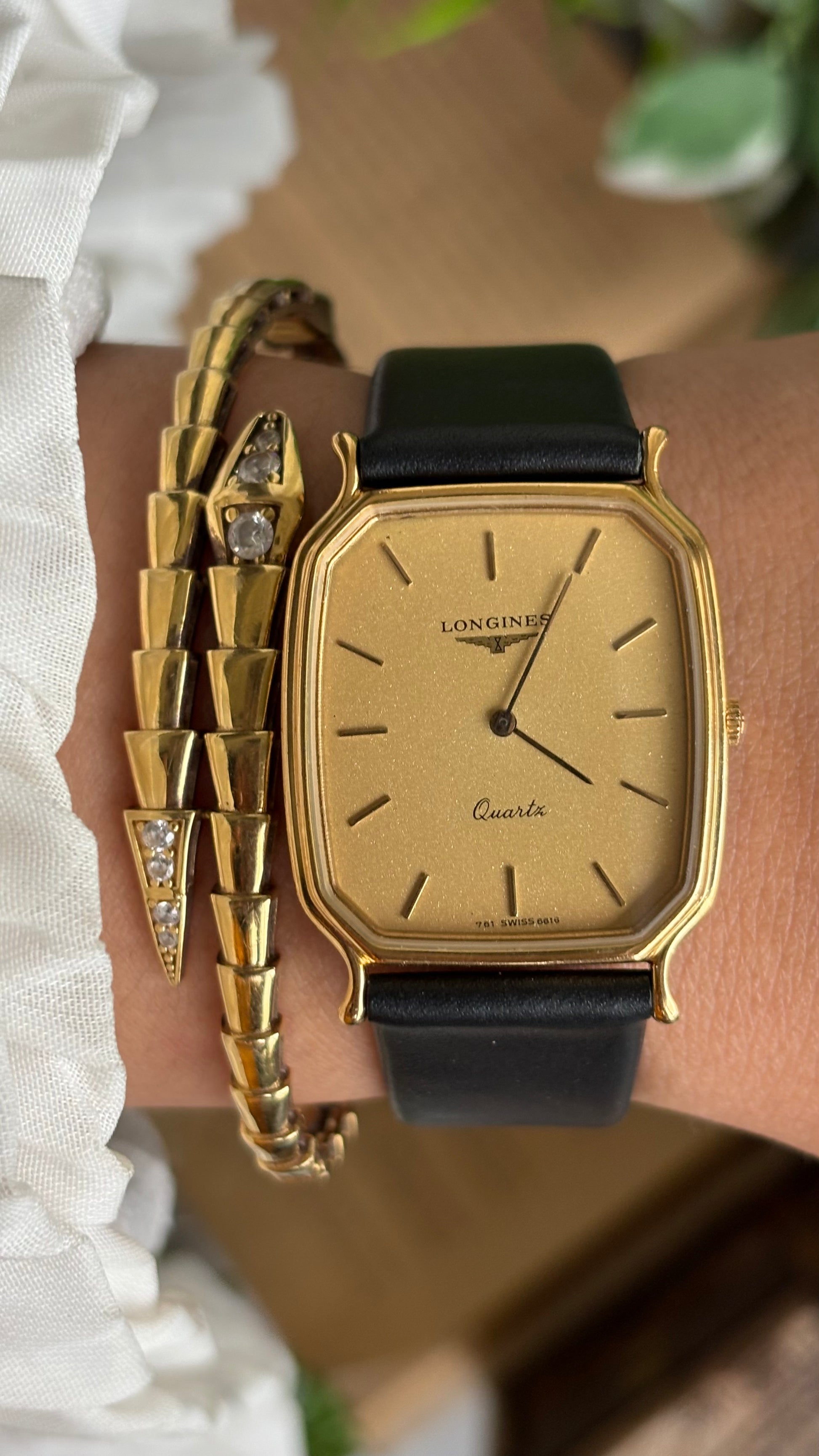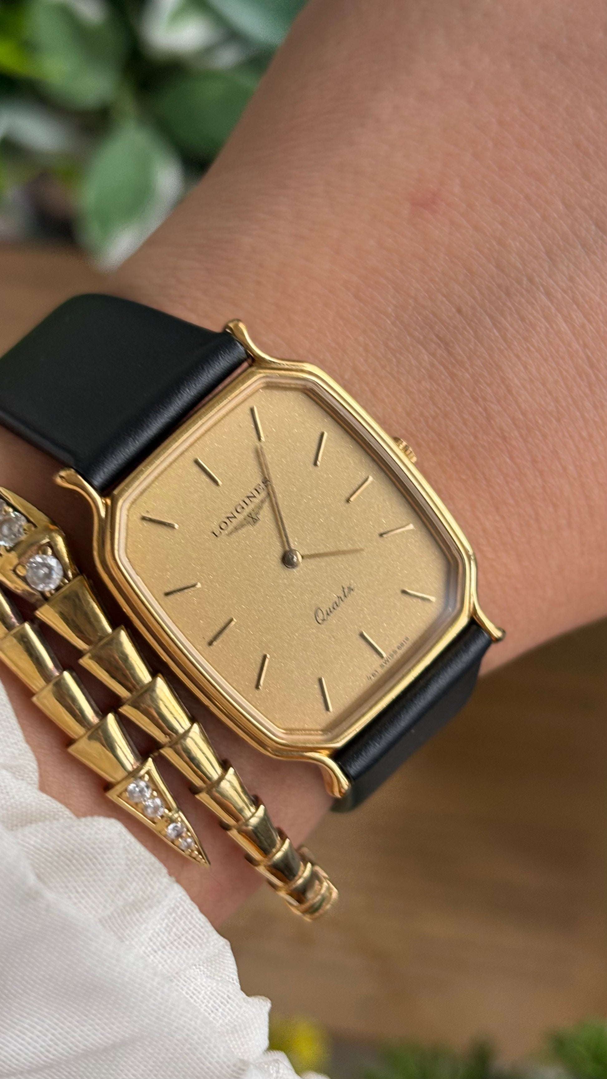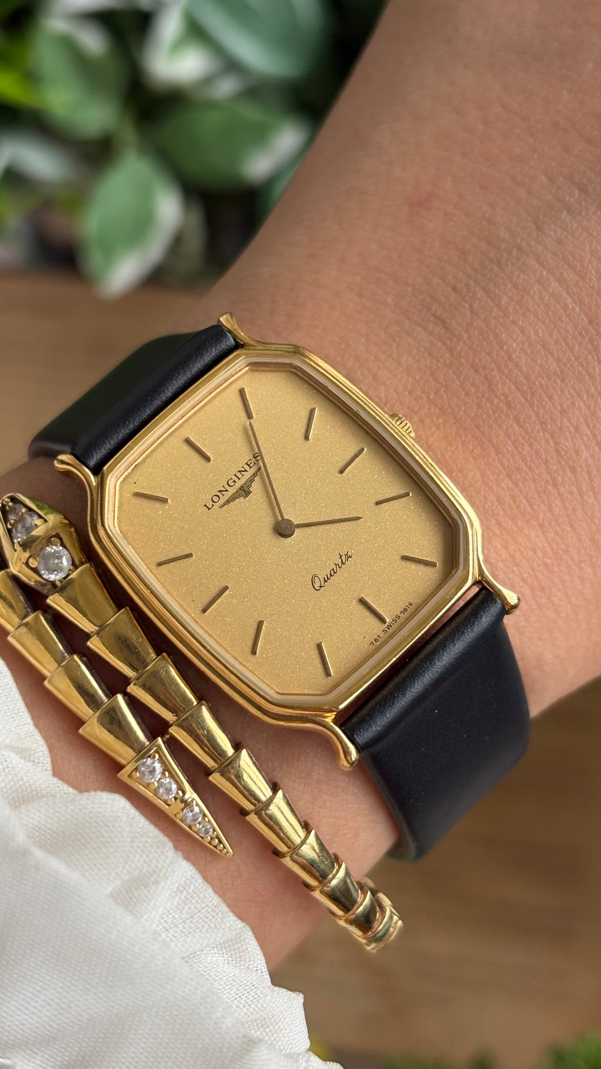 Vintage Longines Men’s Tank Watch in Black Leather Strap