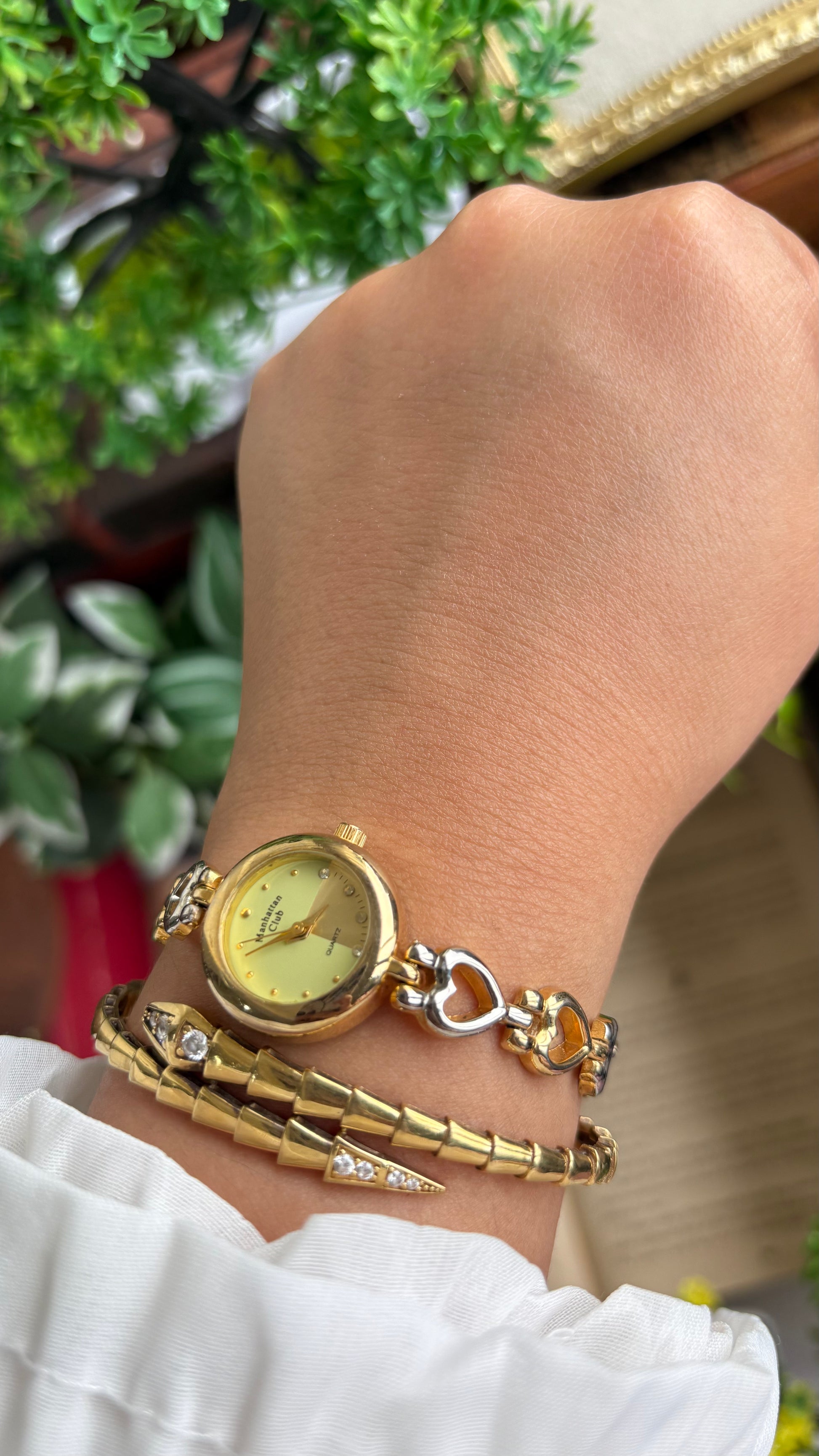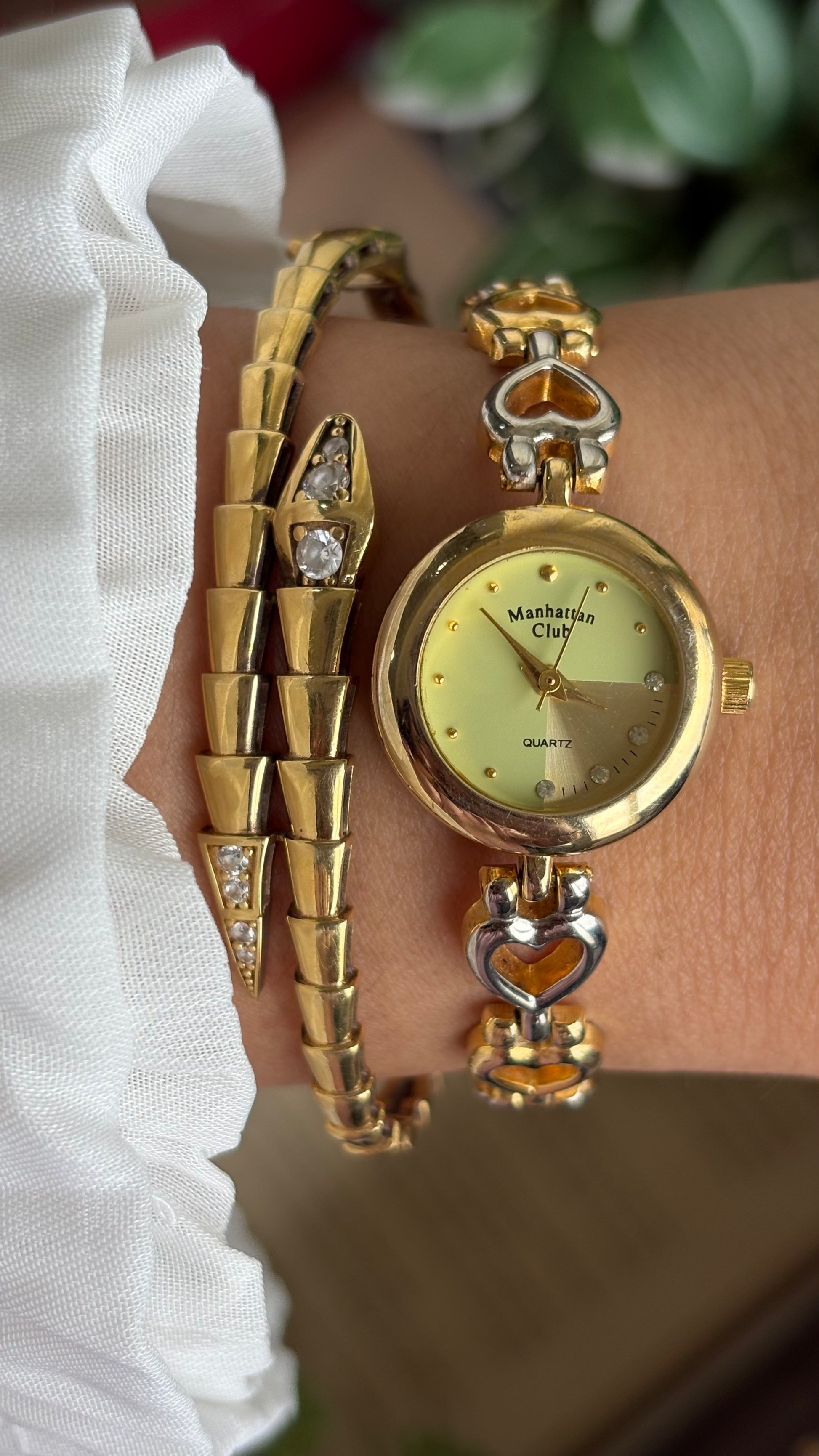 Vintage Manhattan Club Watch in Two-Tone Heart Chain Straps