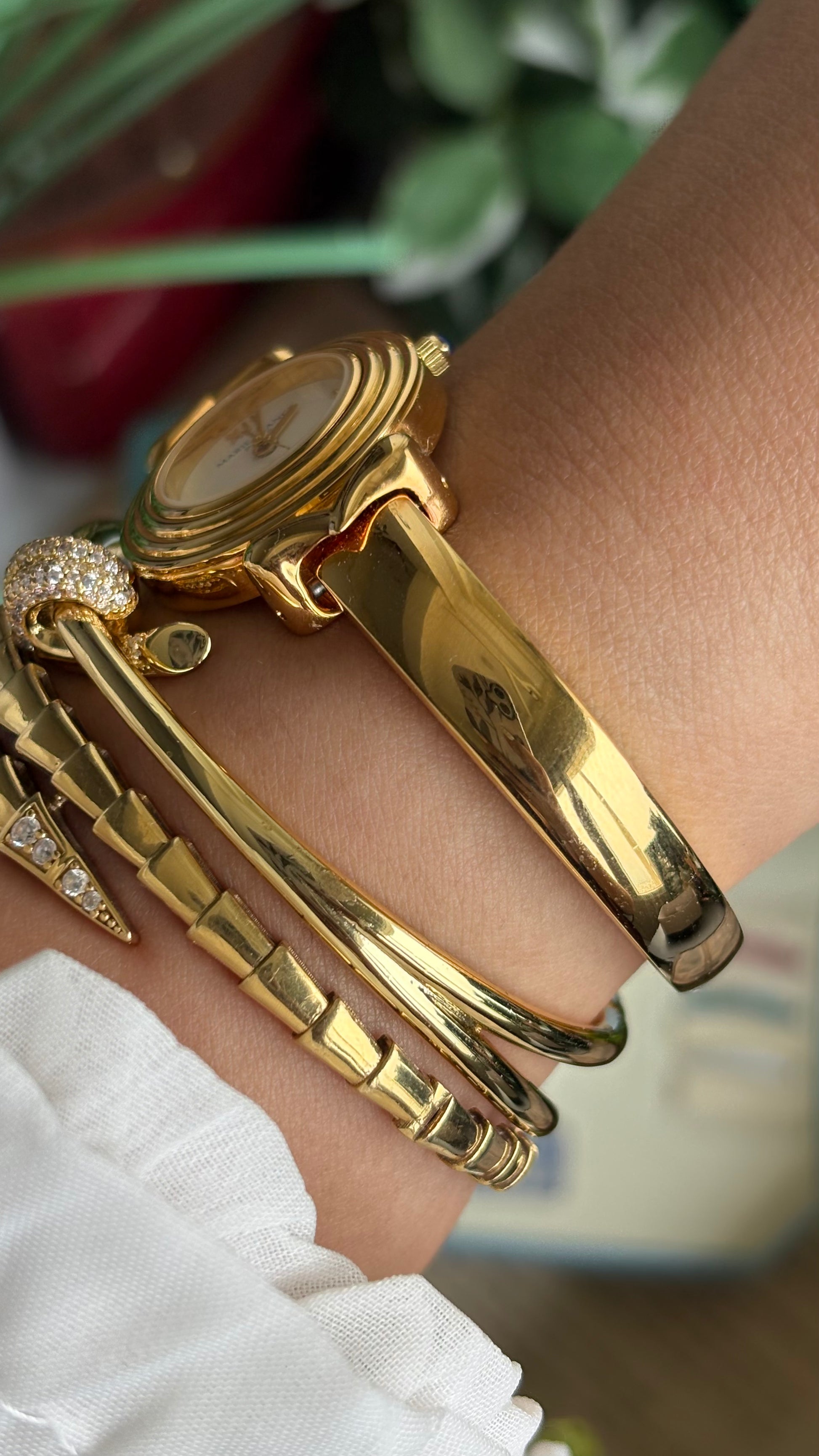Vintage Marie France Interchangeable Bezel Set Bangle Watch in Gold Tone