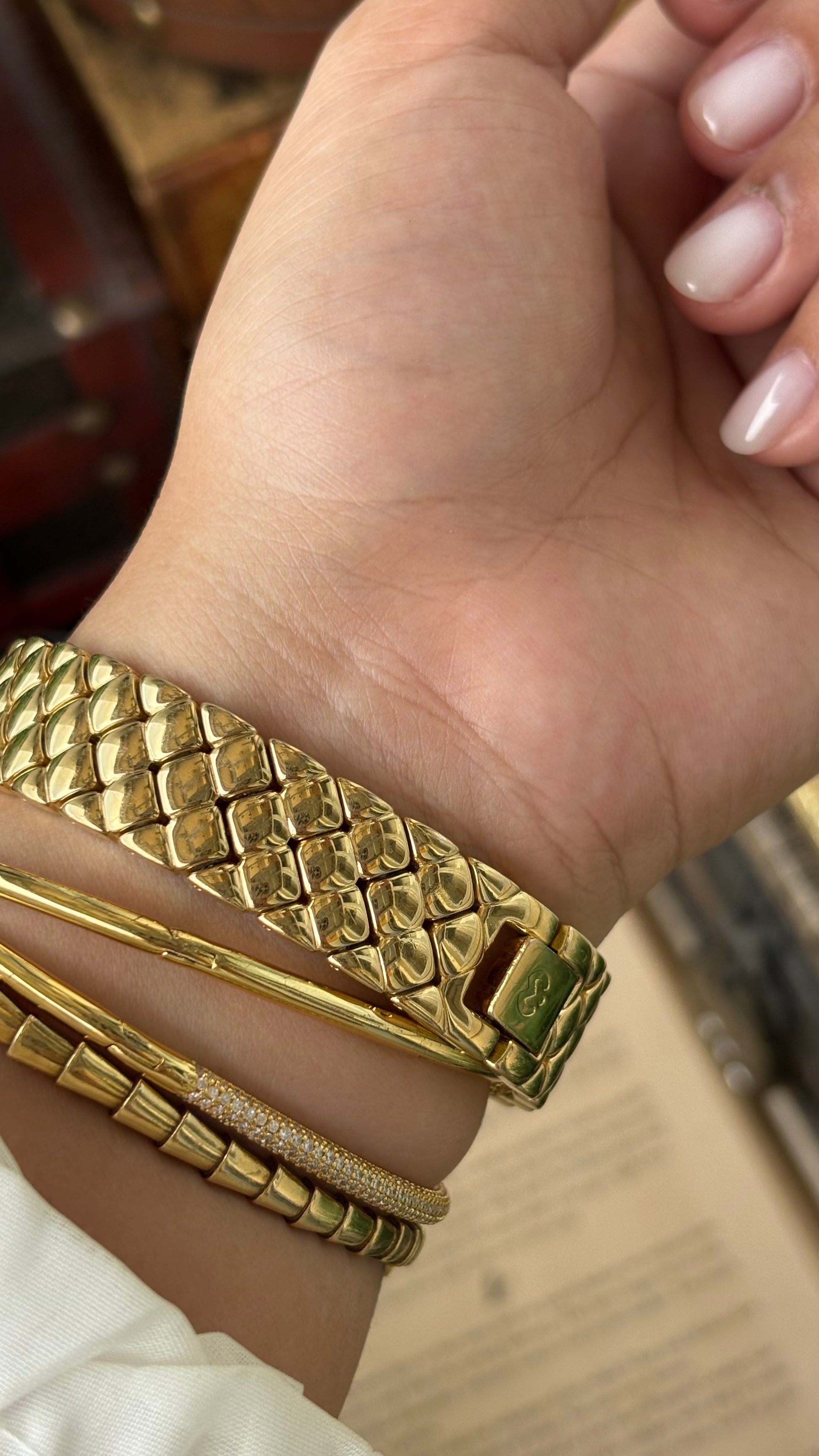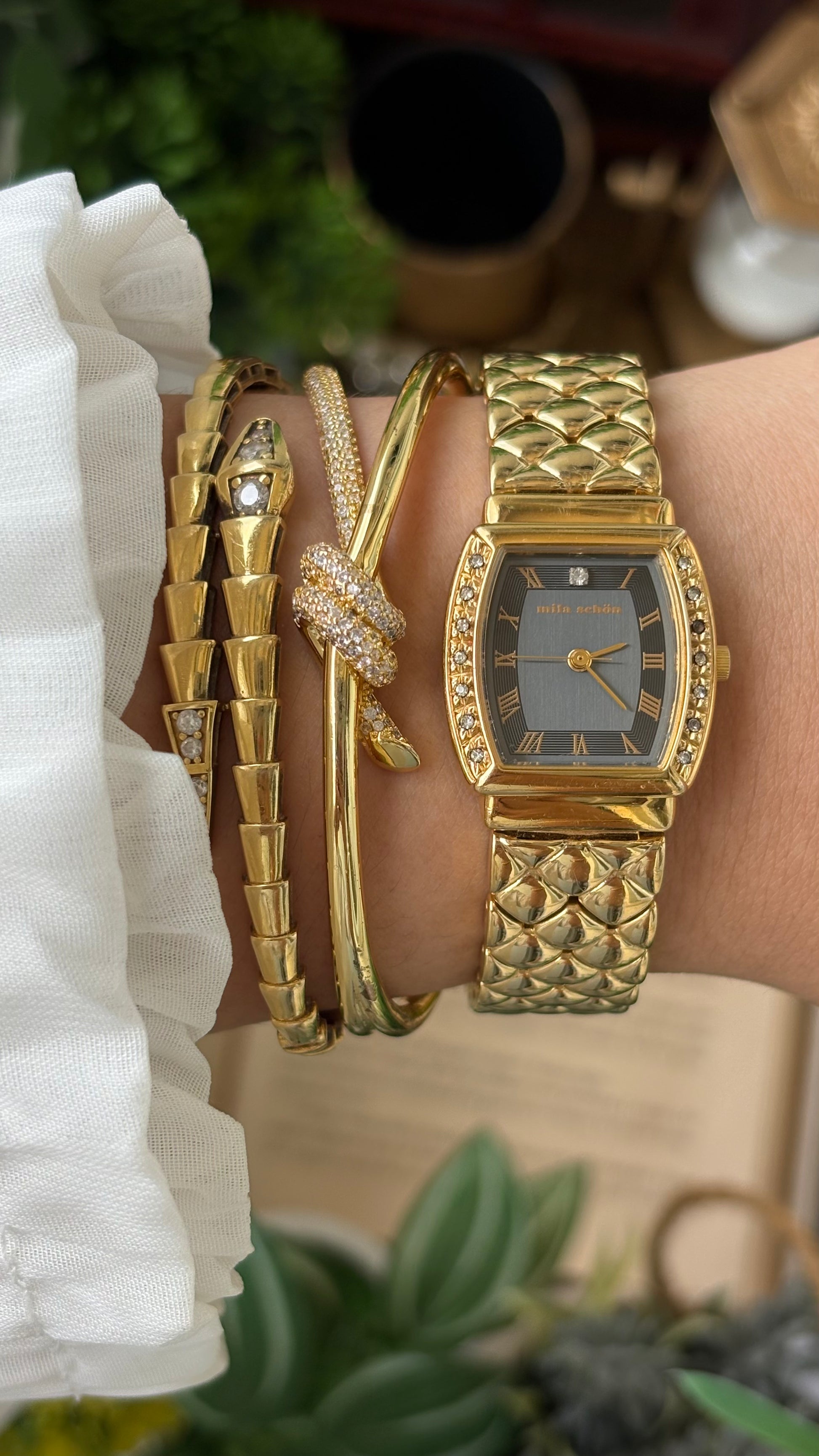 Vintage Mila Schon Watch in Gold Tone Franck Muller Inspired Quartz Quilted Bracelet