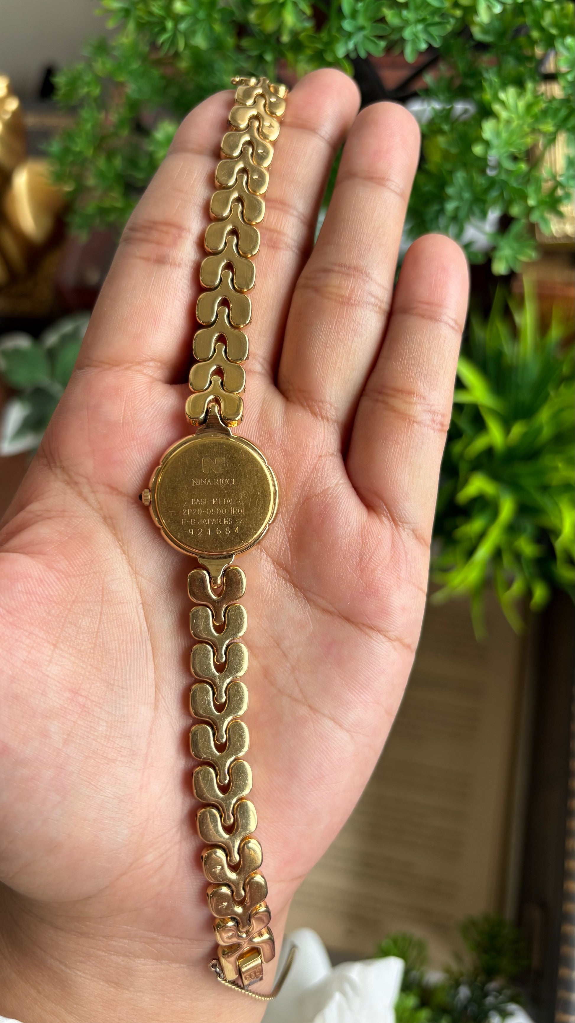 Vintage Nina Ricci Watch in Gold Tone Mother of Pearl Dial Flower Art Deco