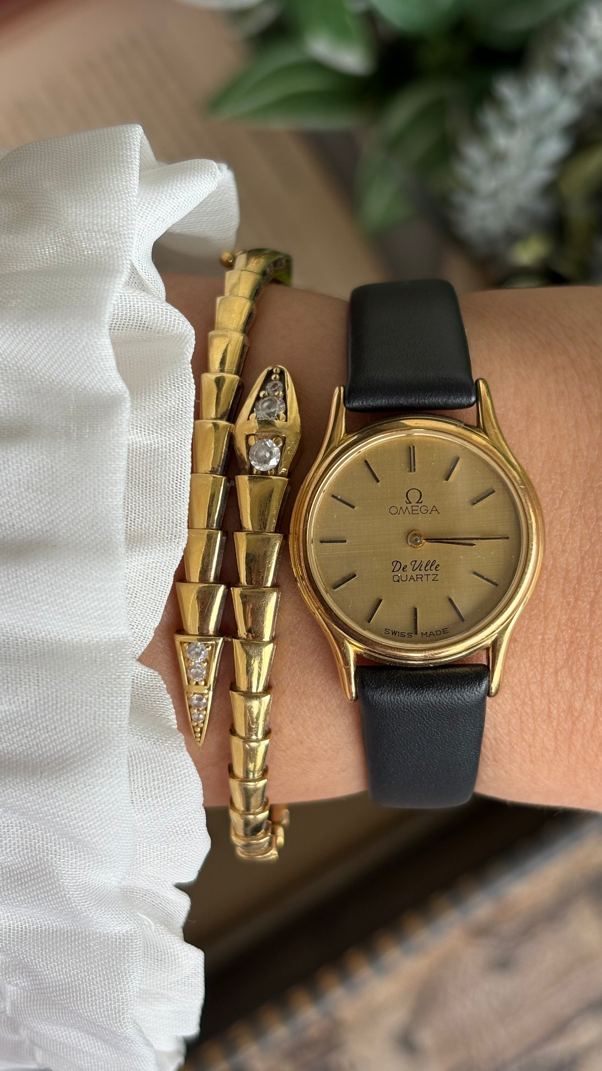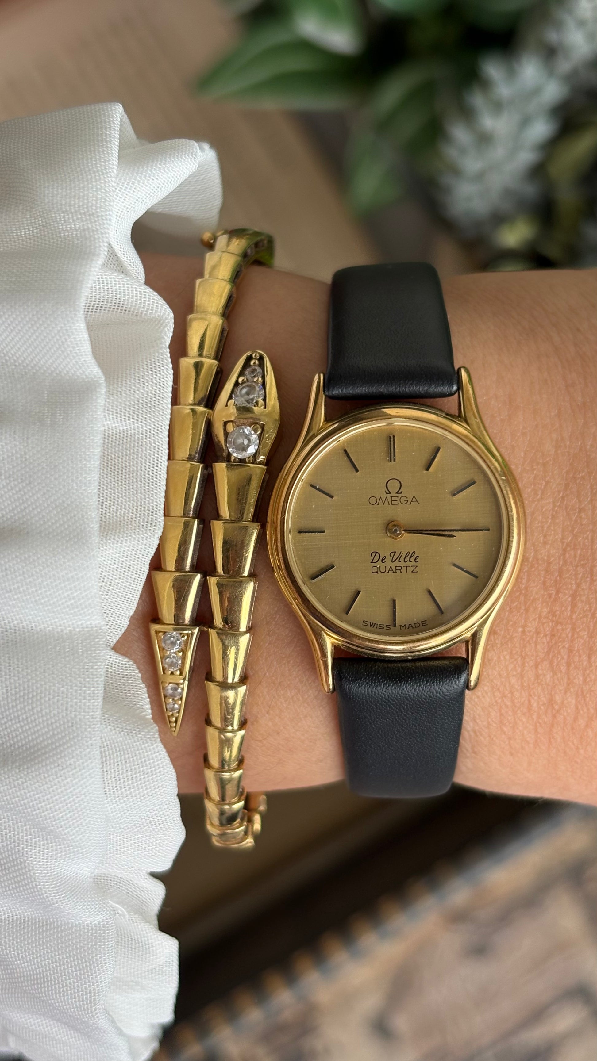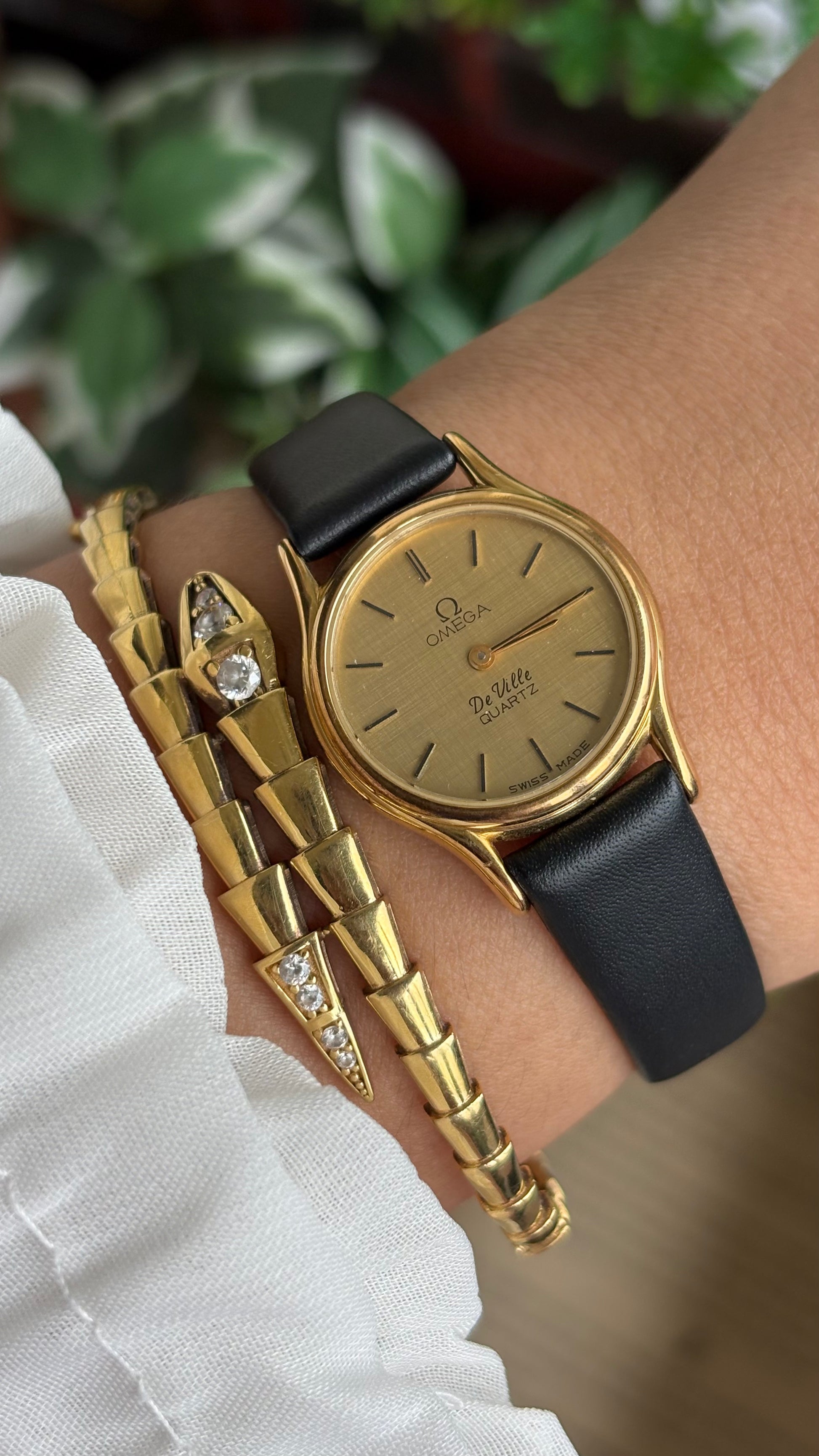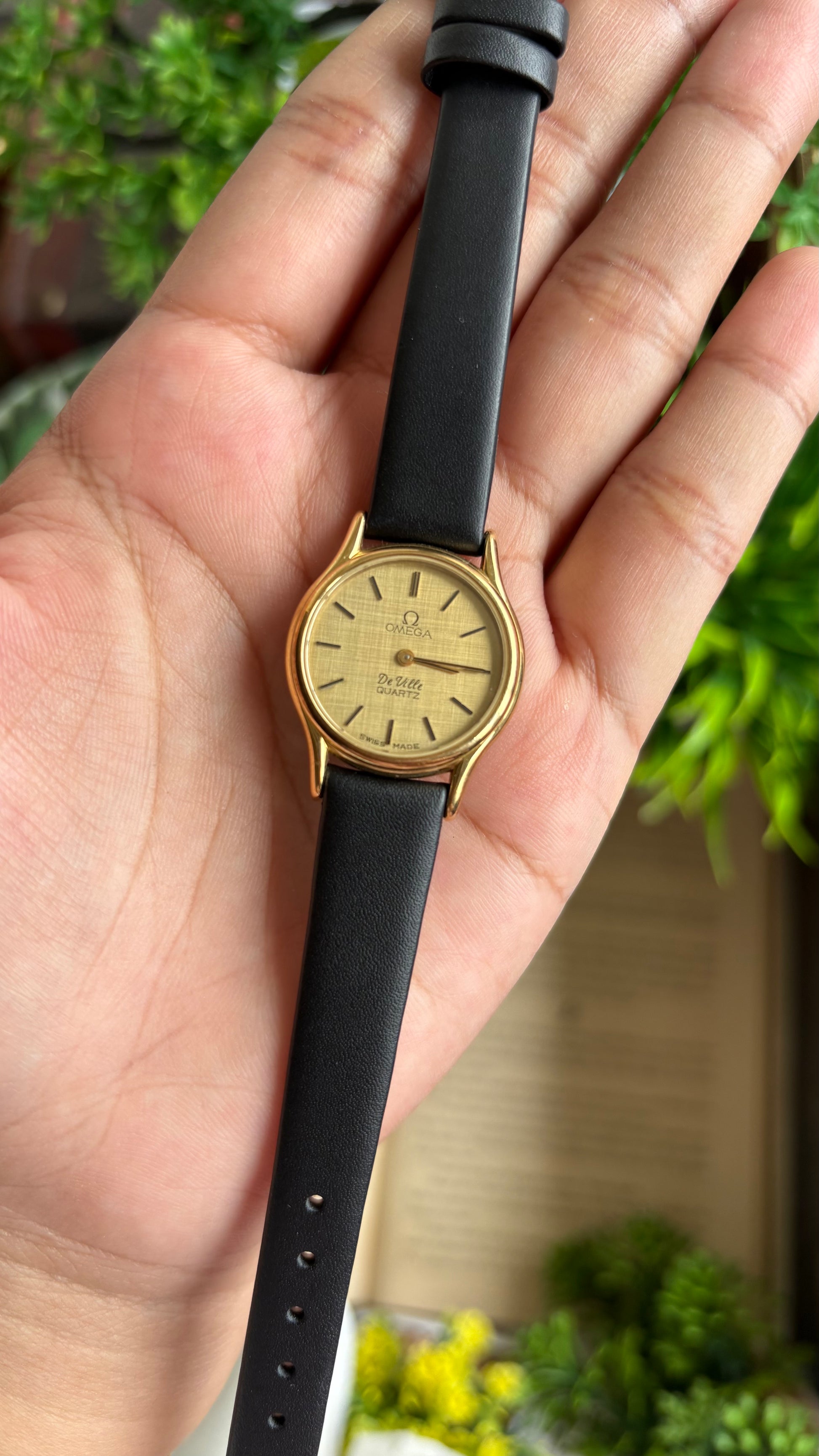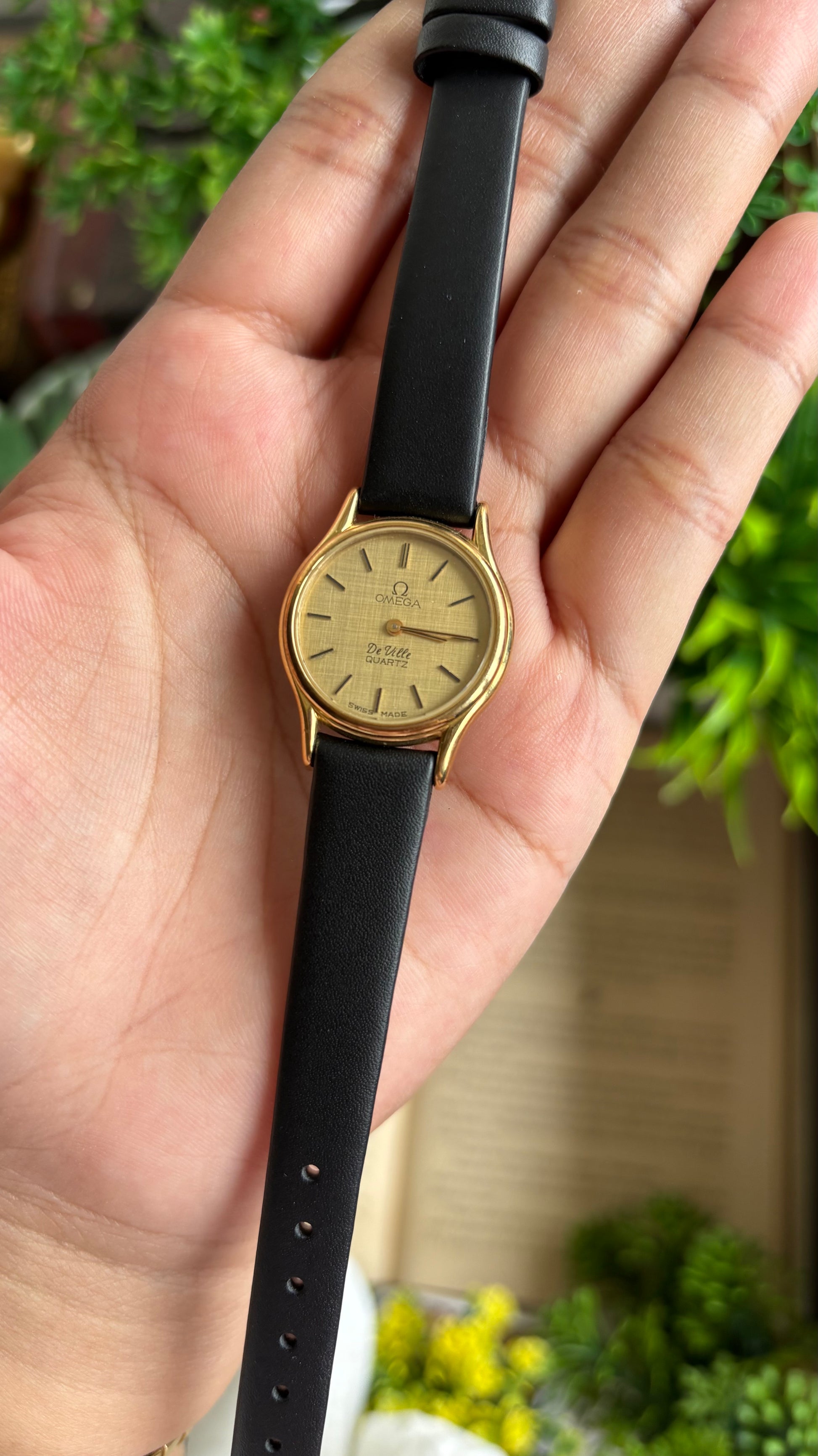 Vintage Omega De Ville Women’s Dress Watch in Black Leather Strap with Omega Box