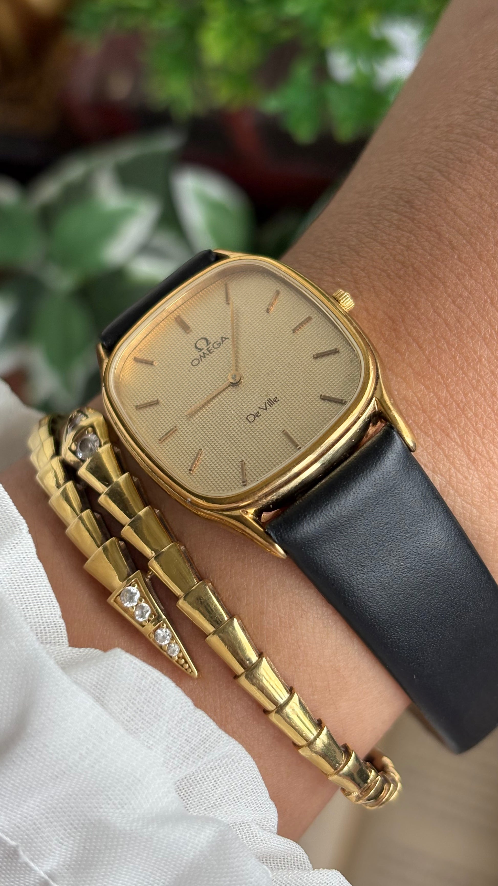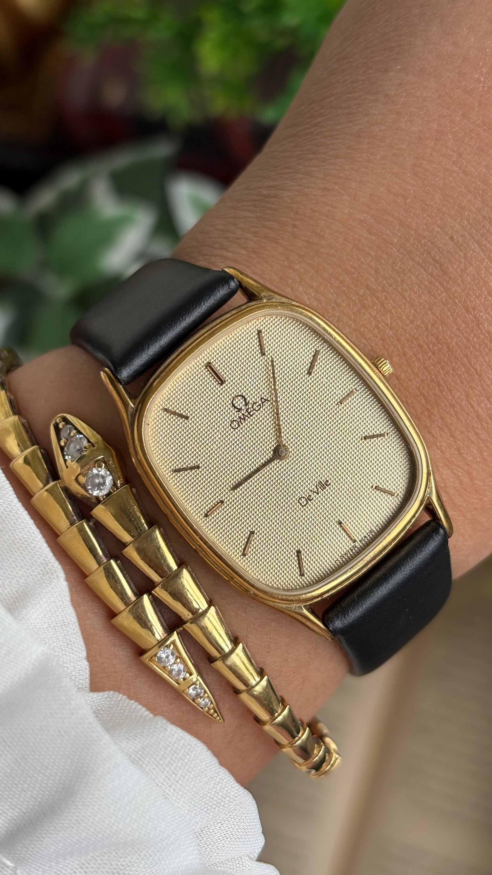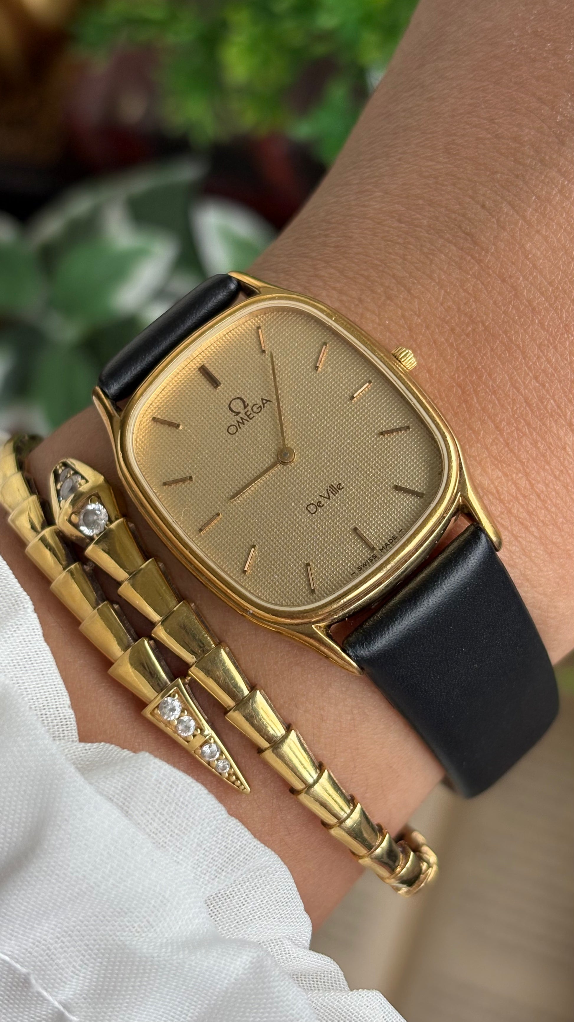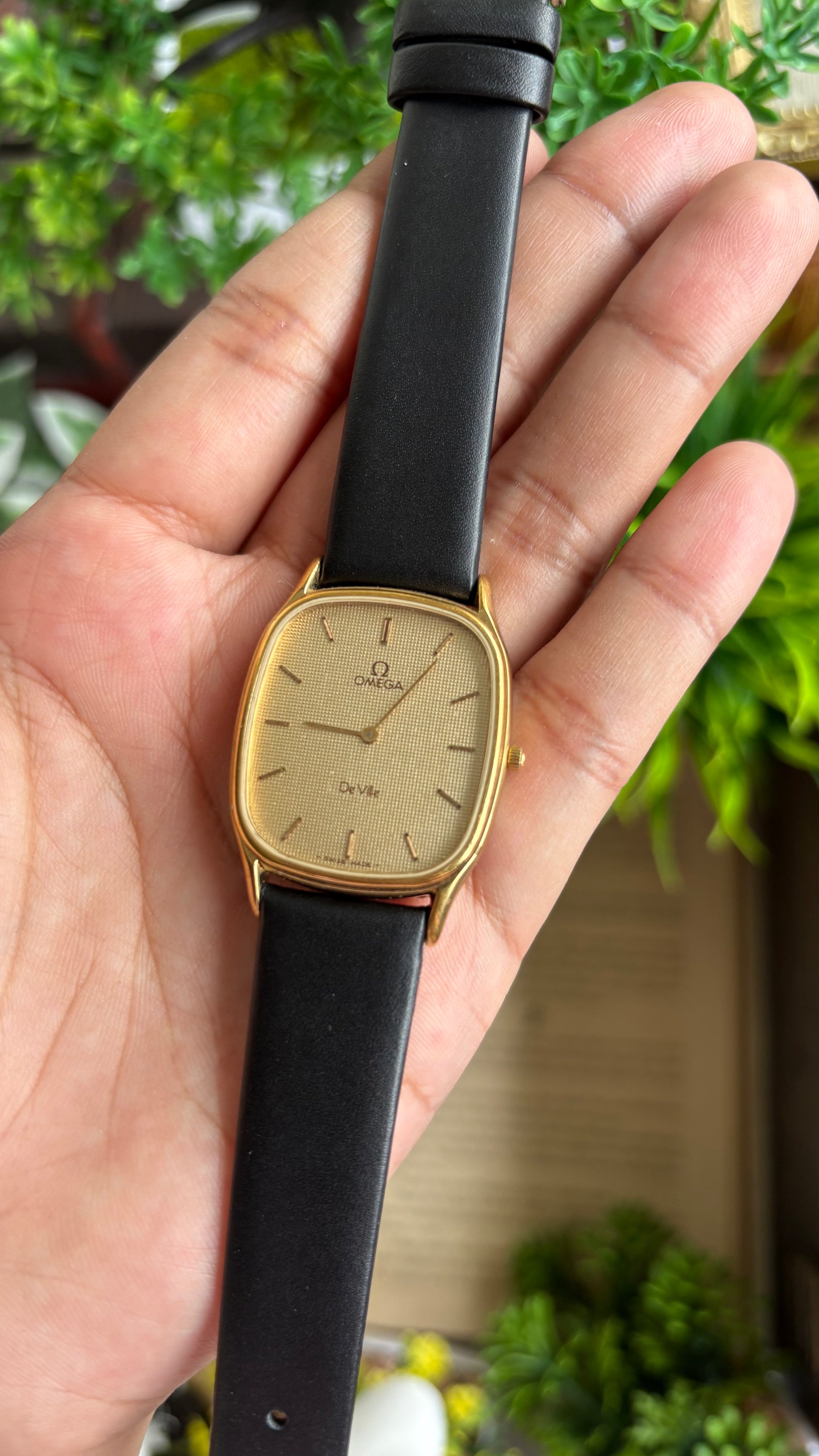 Vintage Omega De Ville Tank Men’s Dress Watch in Black Leather Strap Textured Dial with Omega Box