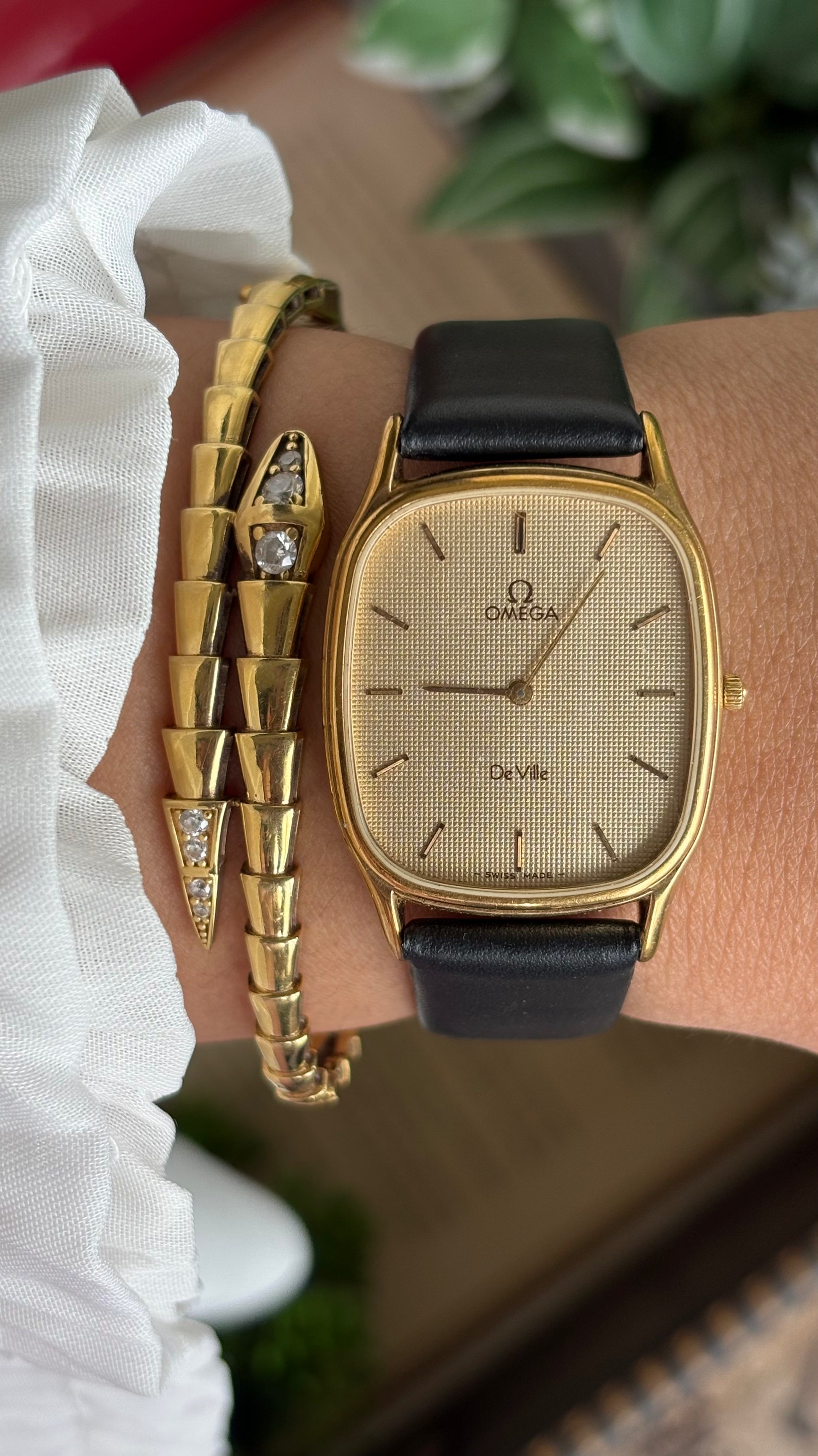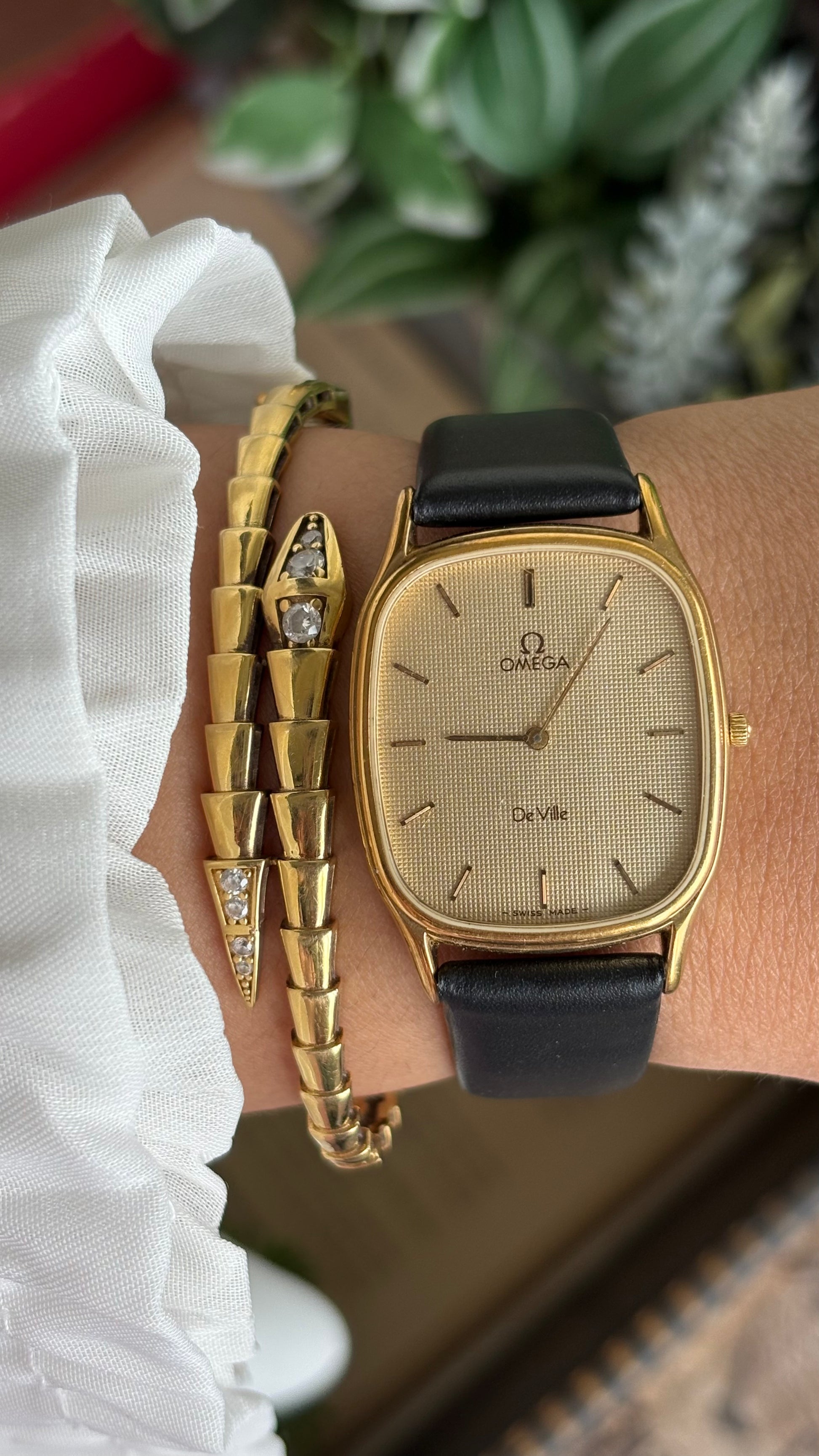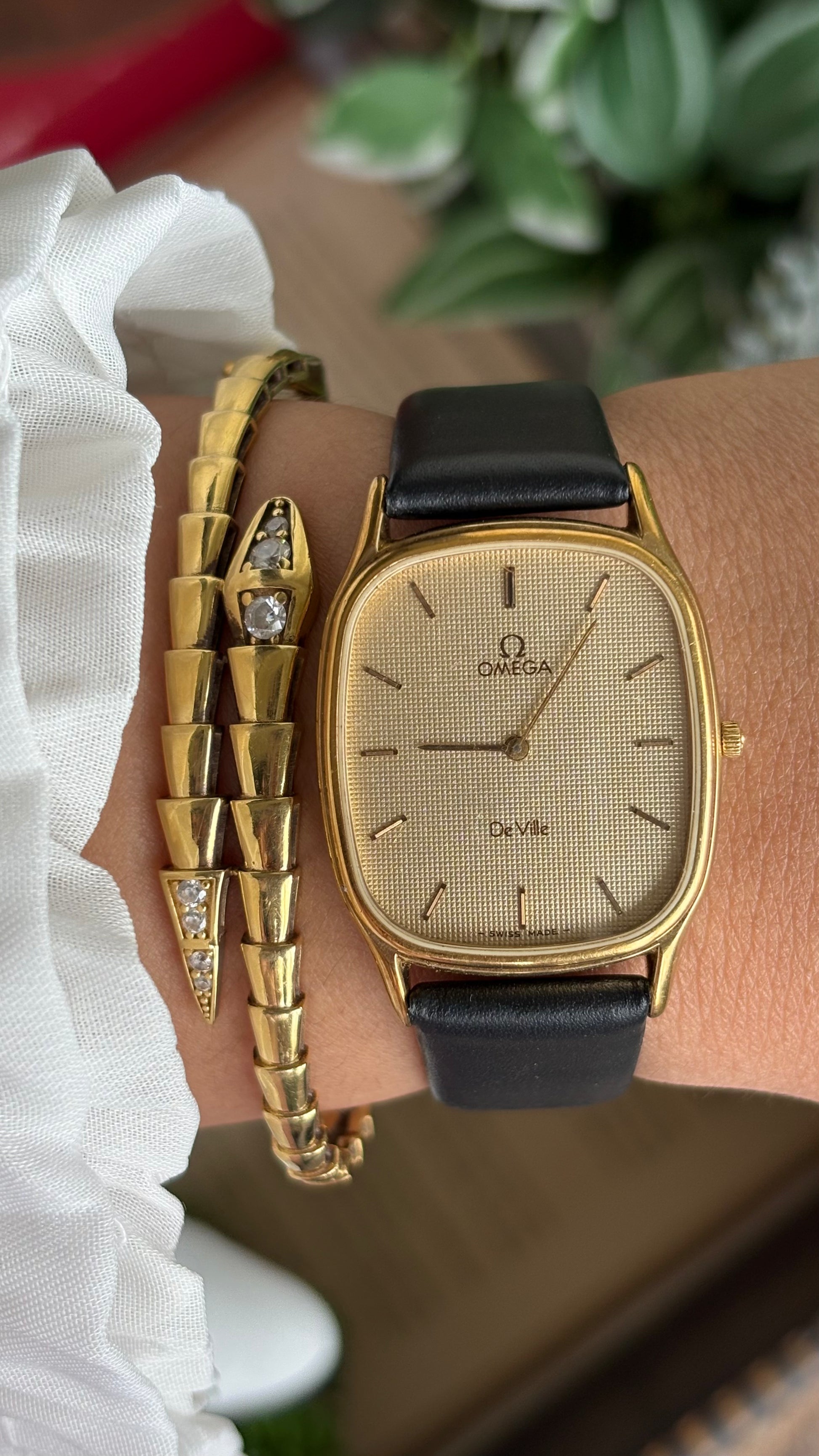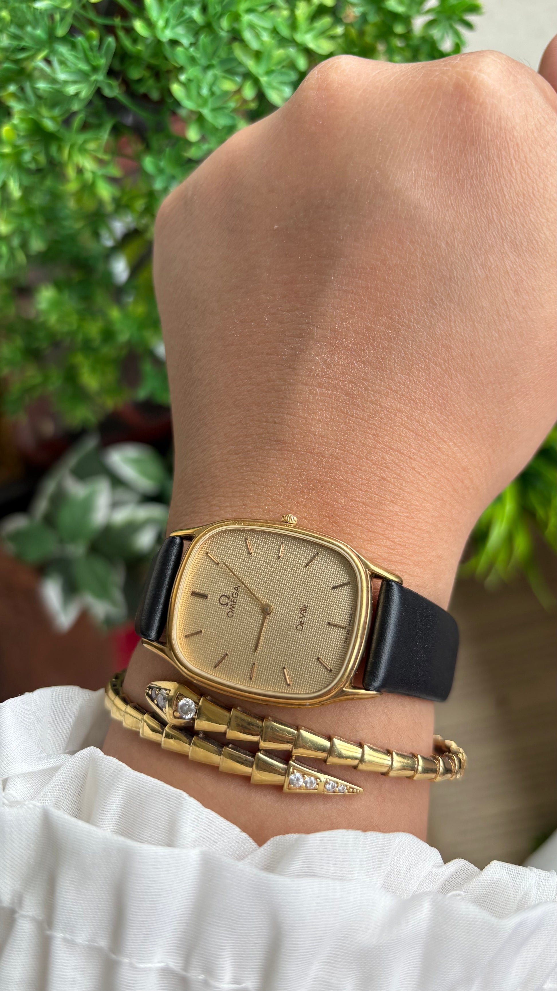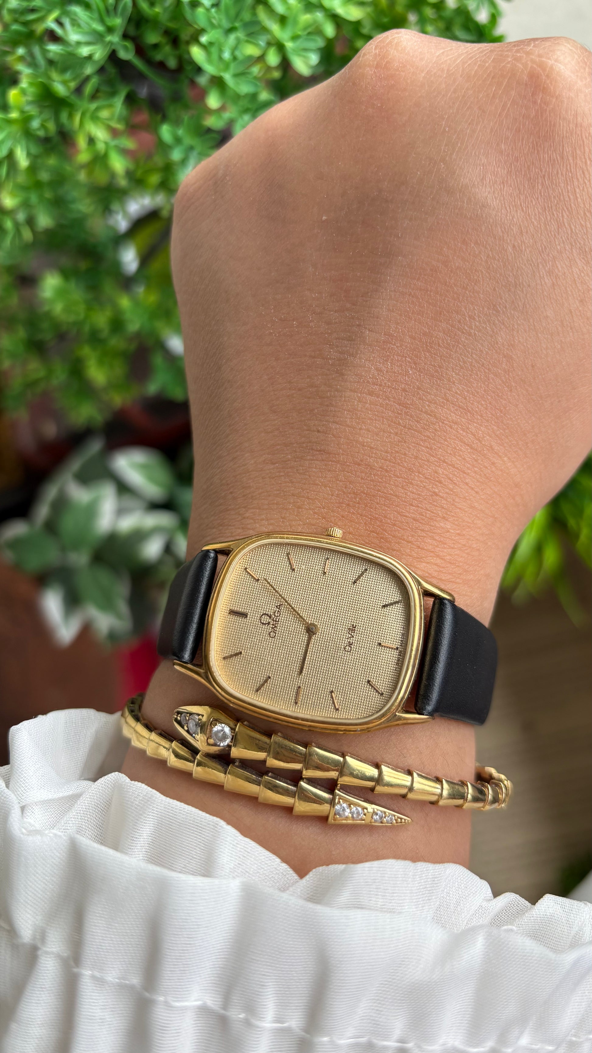 Vintage Omega De Ville Tank Men’s Dress Watch in Black Leather Strap Textured Dial with Omega Box