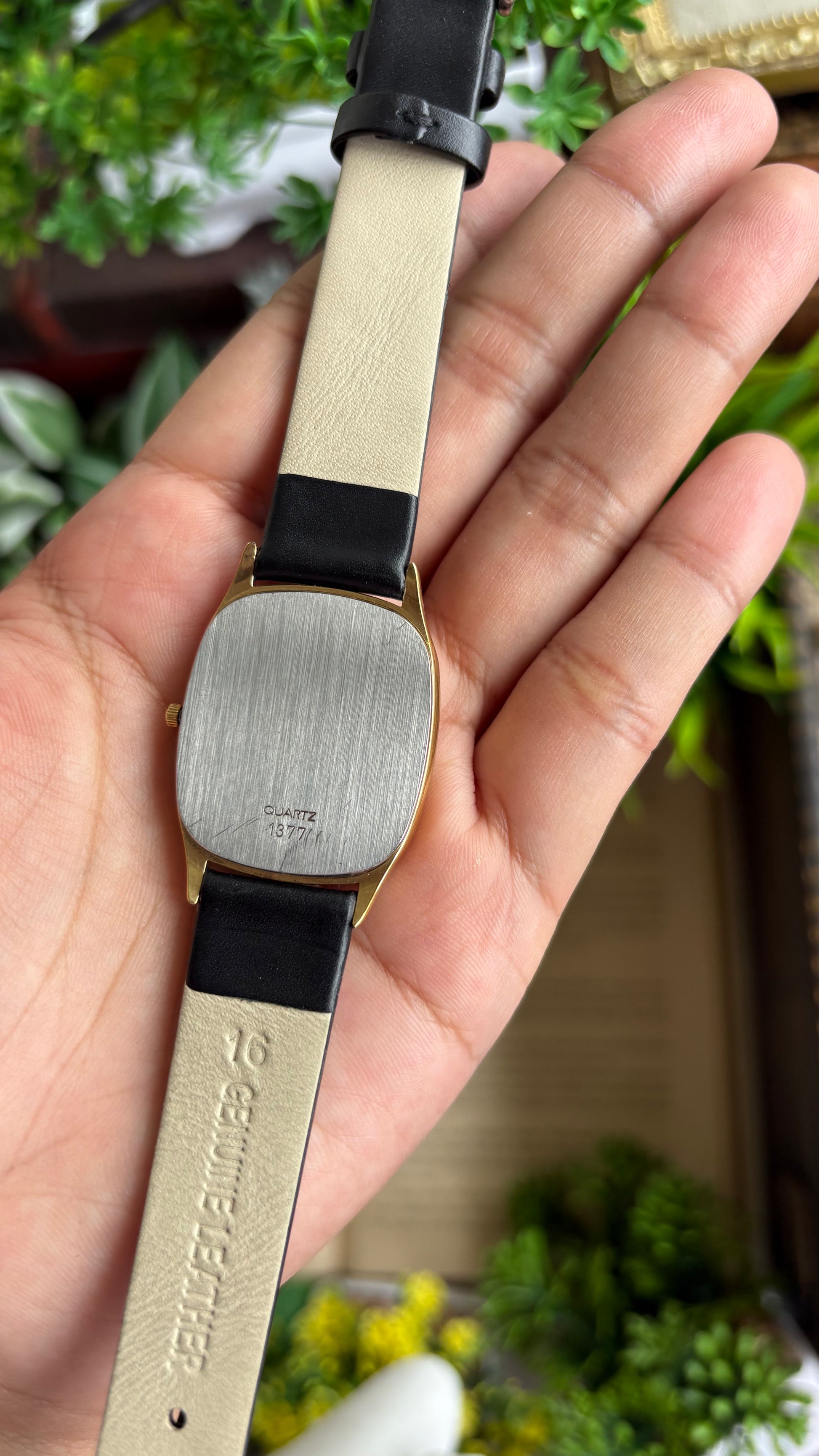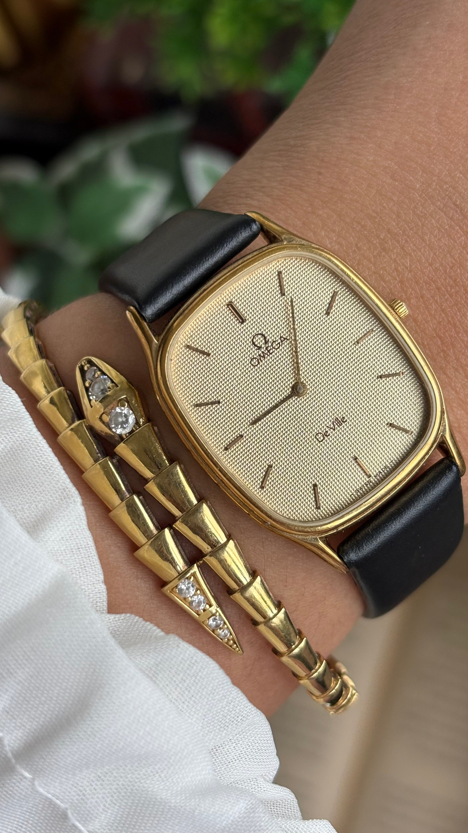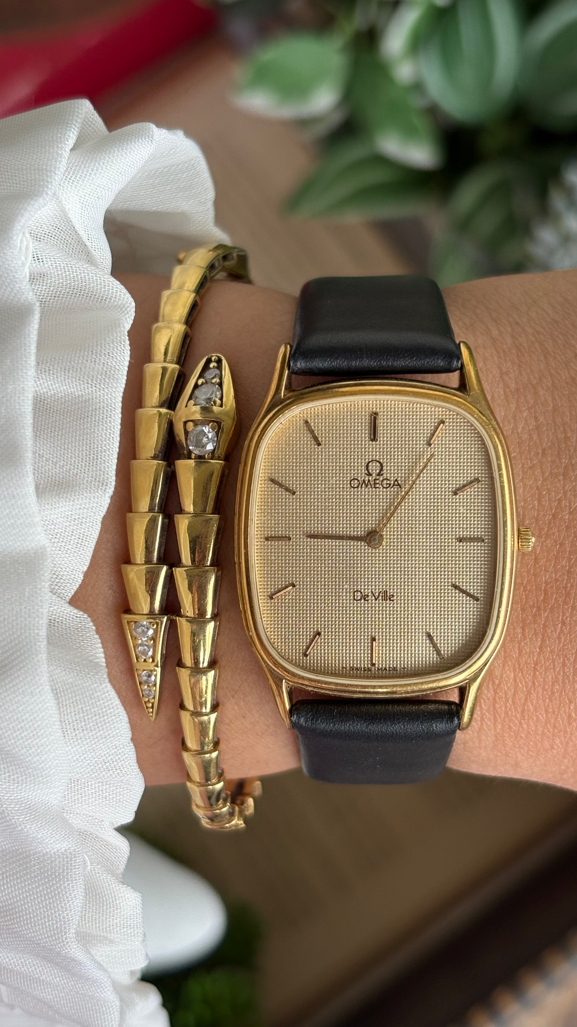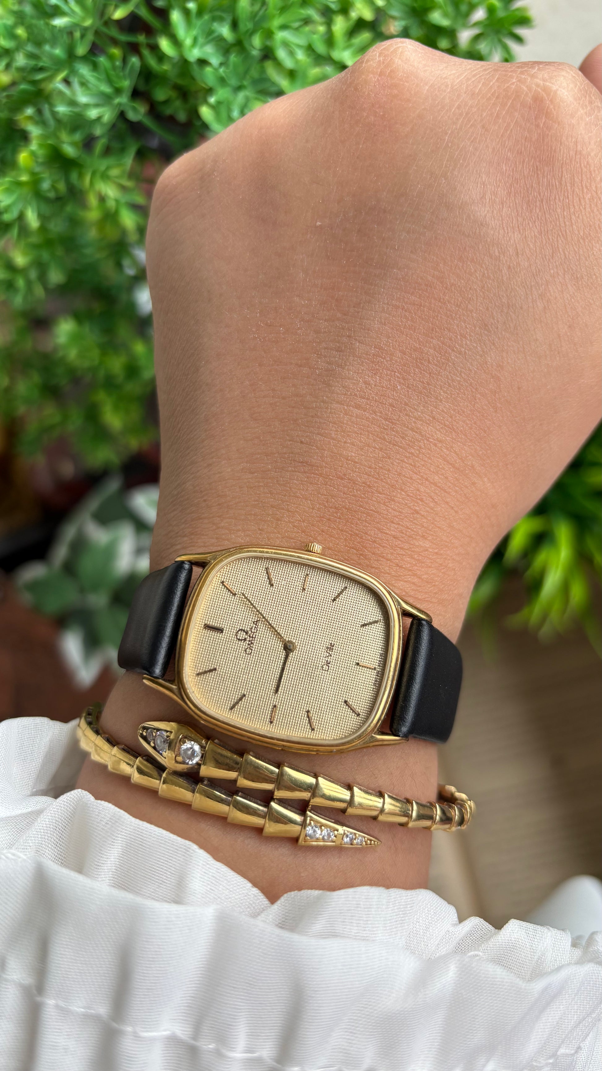 Vintage Omega De Ville Tank Men’s Dress Watch in Black Leather Strap Textured Dial with Omega Box