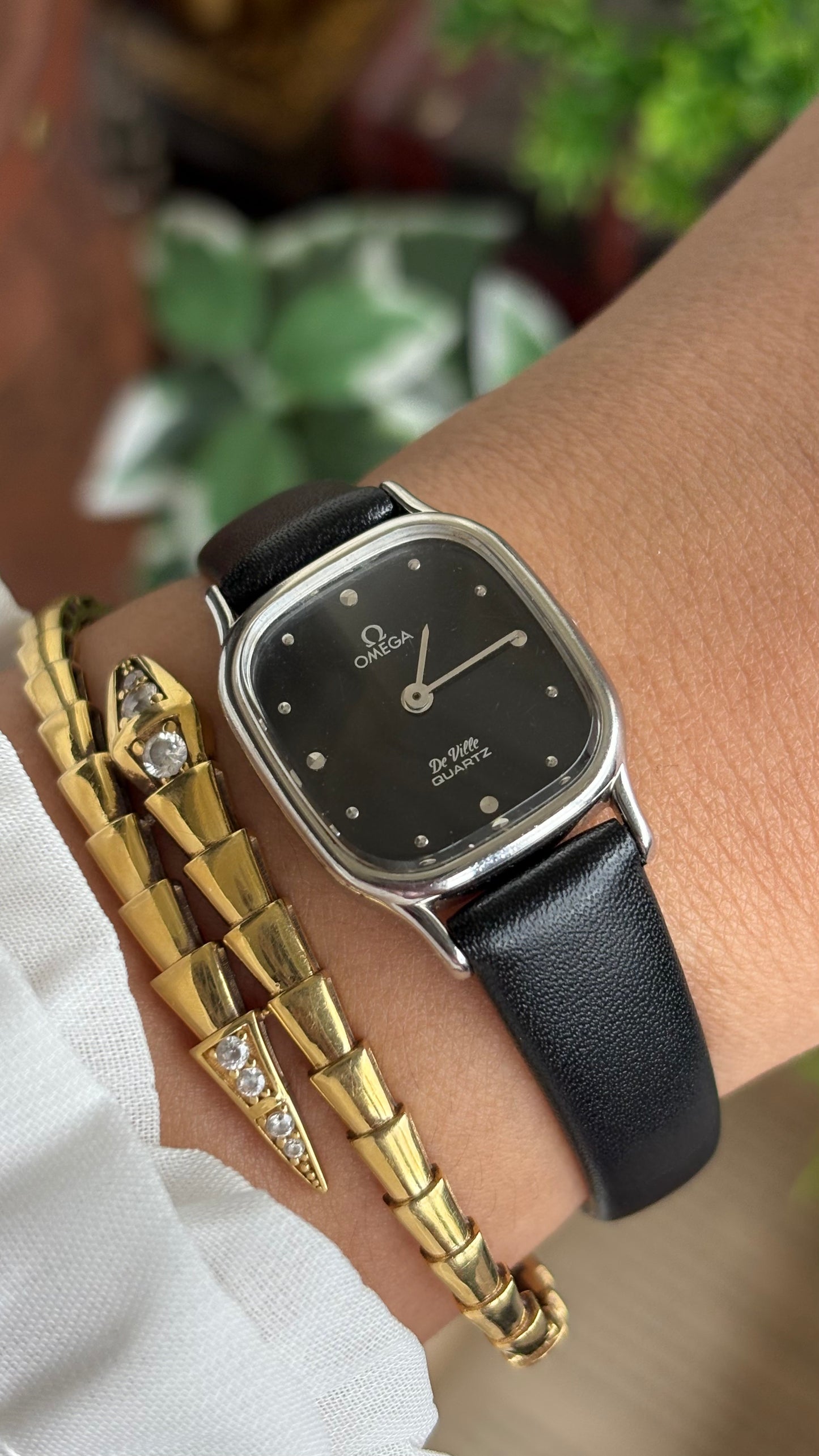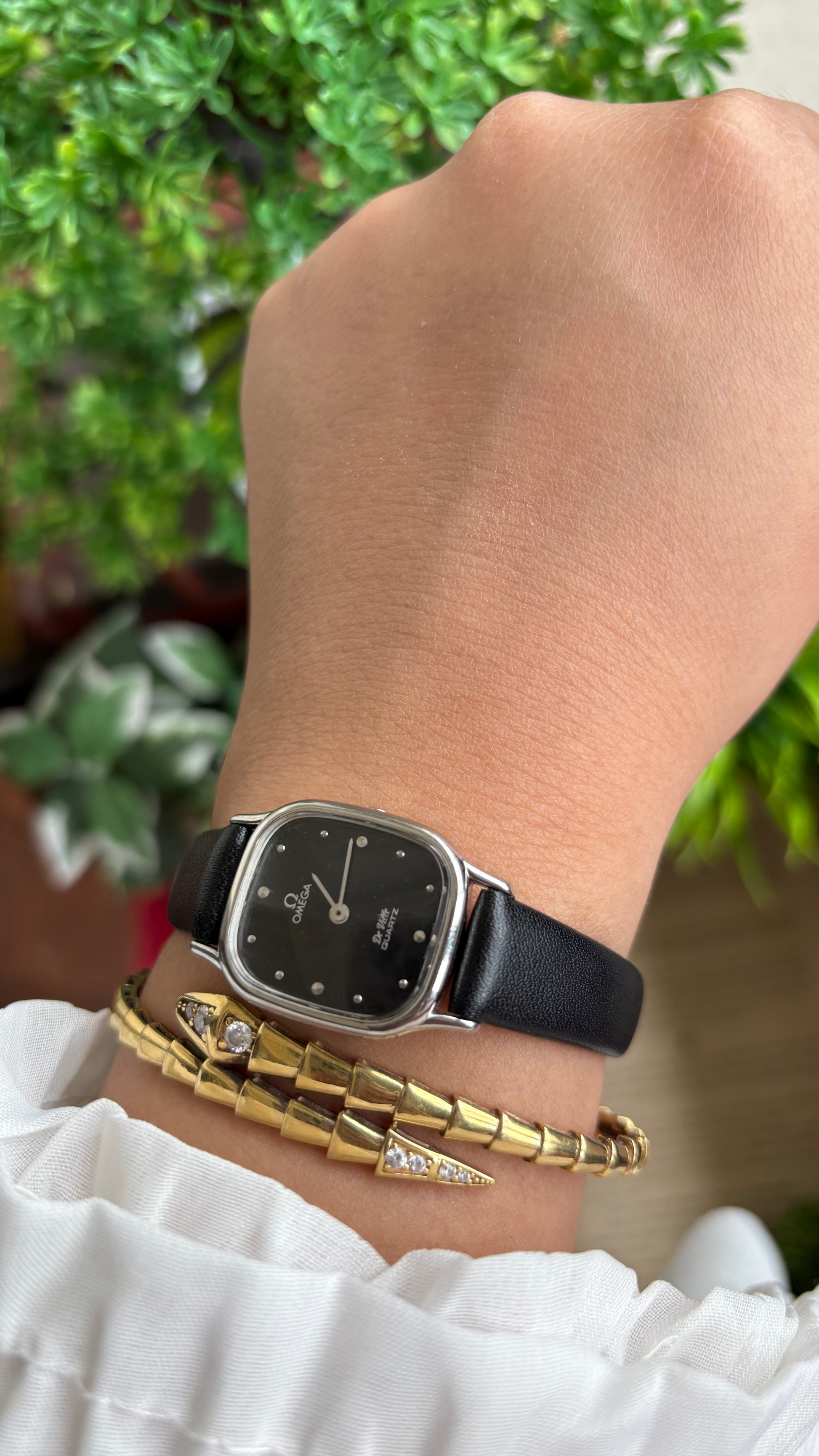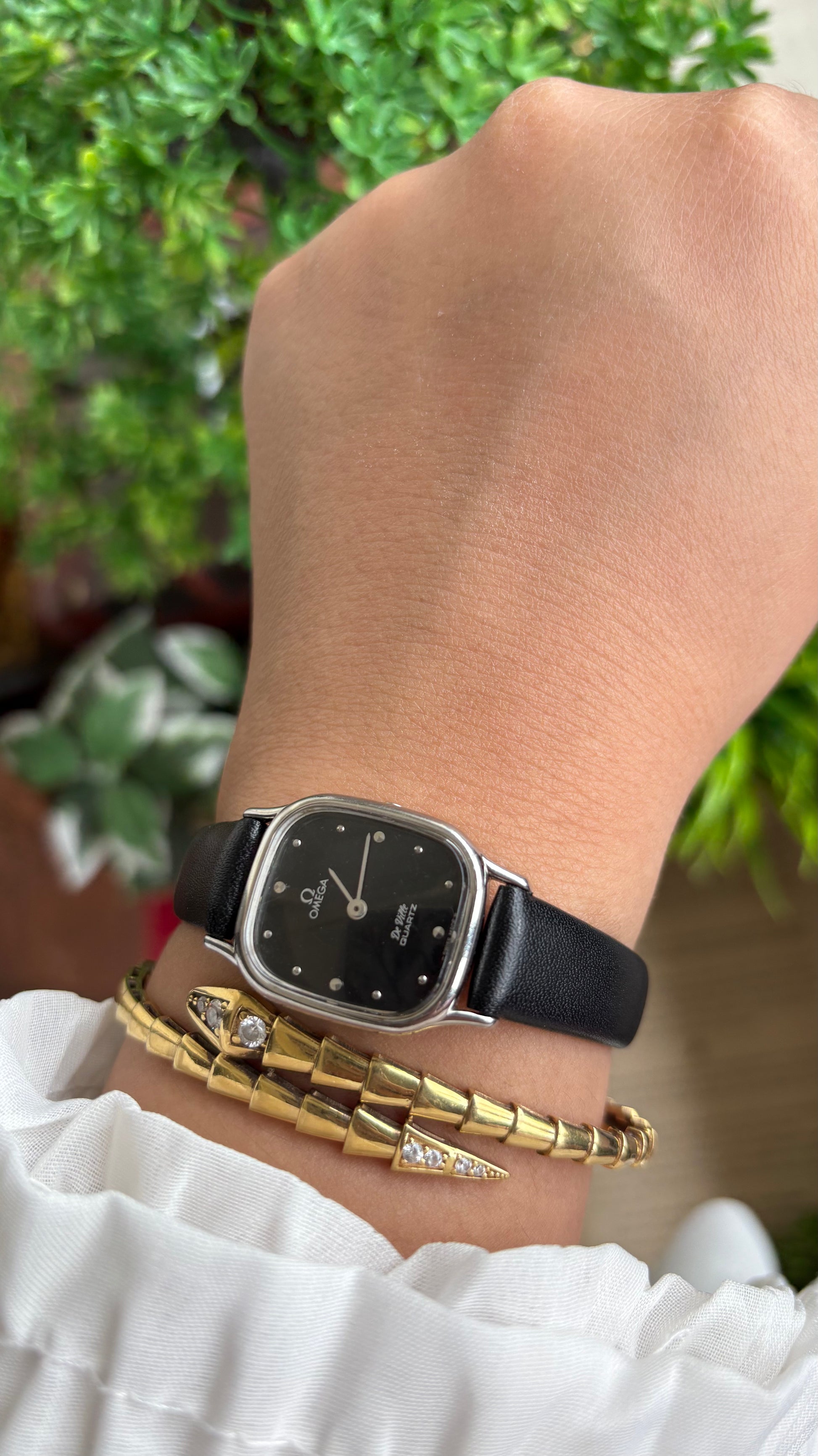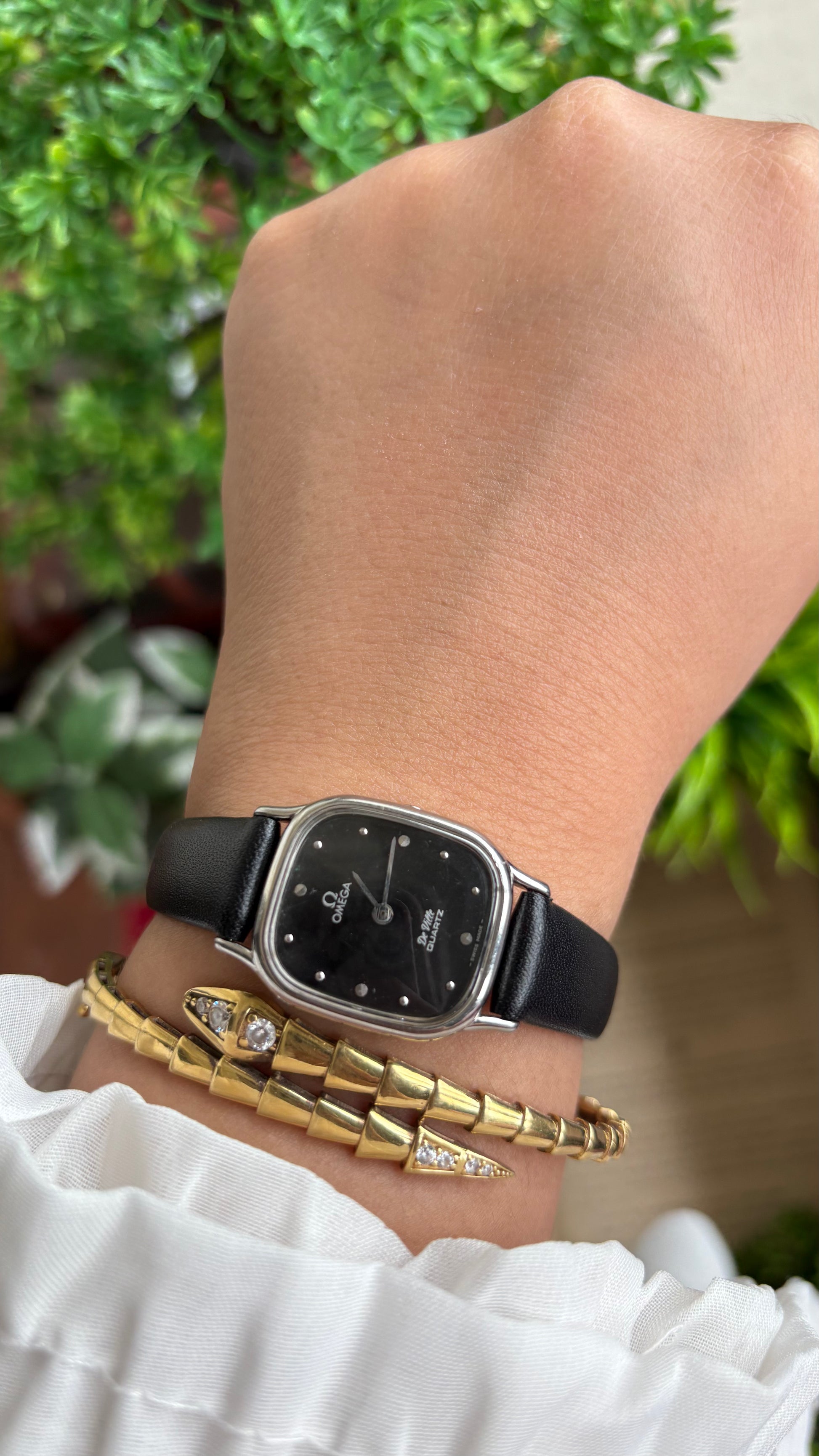 Vintage Omega De Ville Mini Tank Women’s Dress Watch in Black Leather Strap with Omega Box