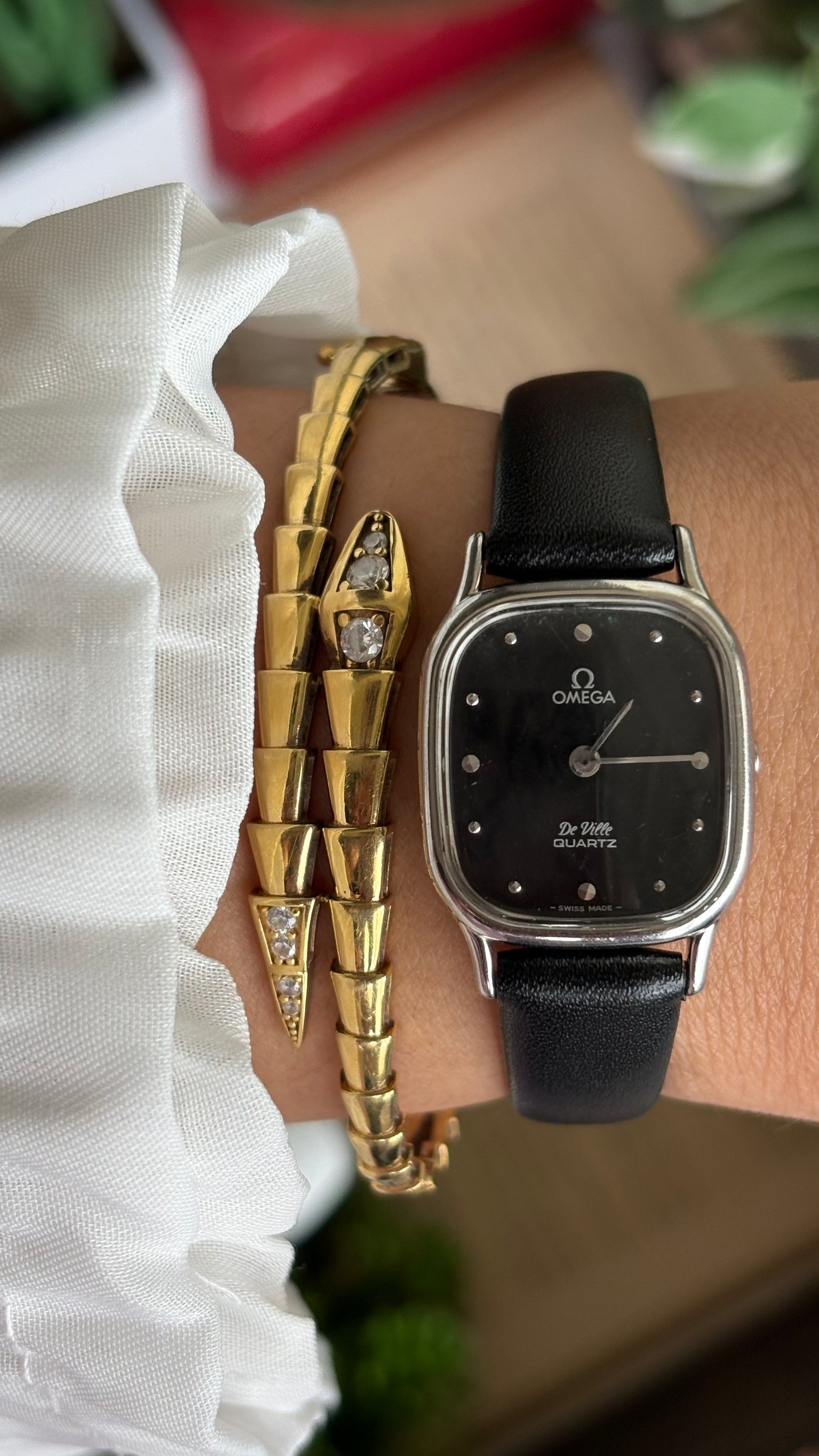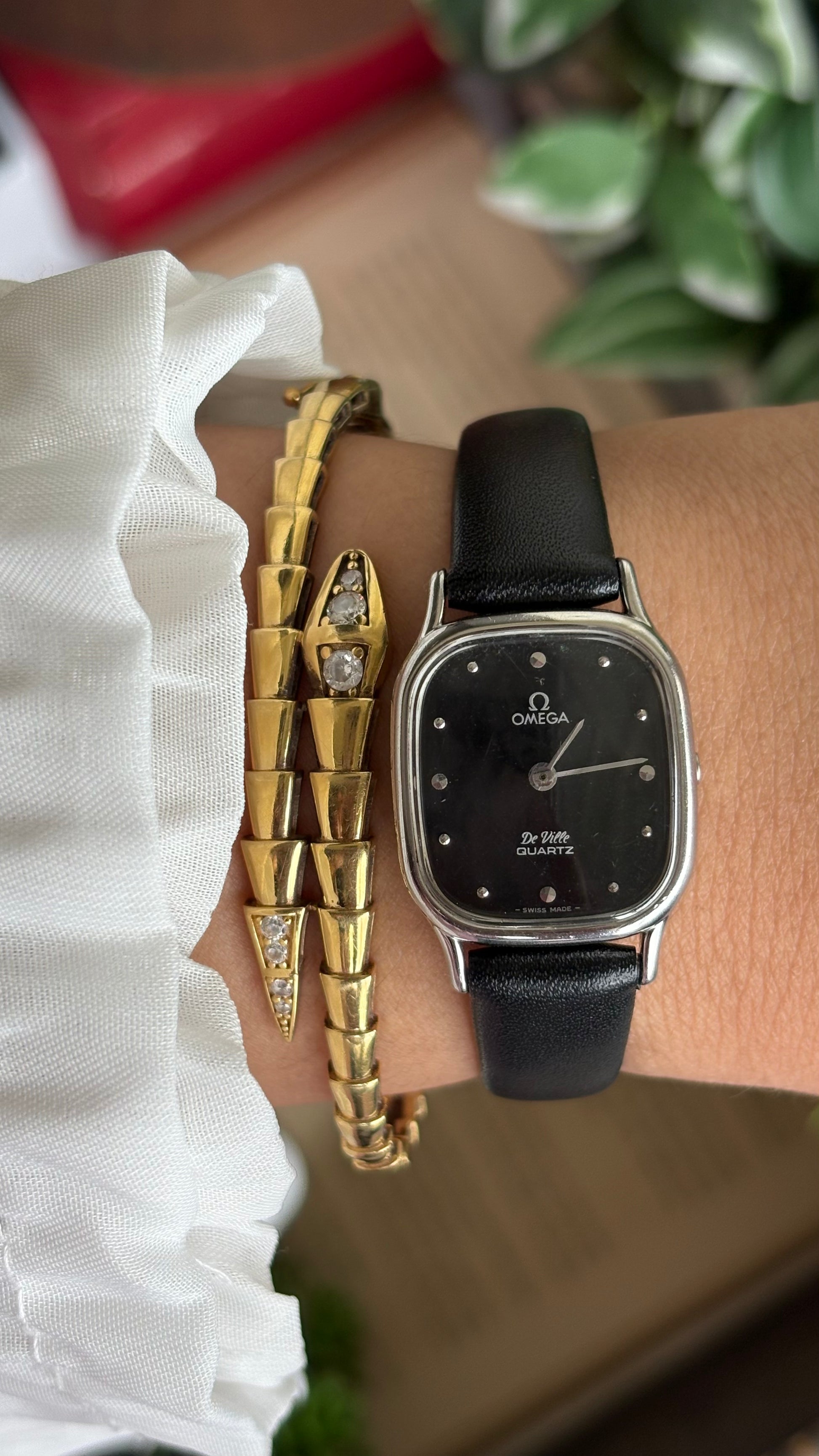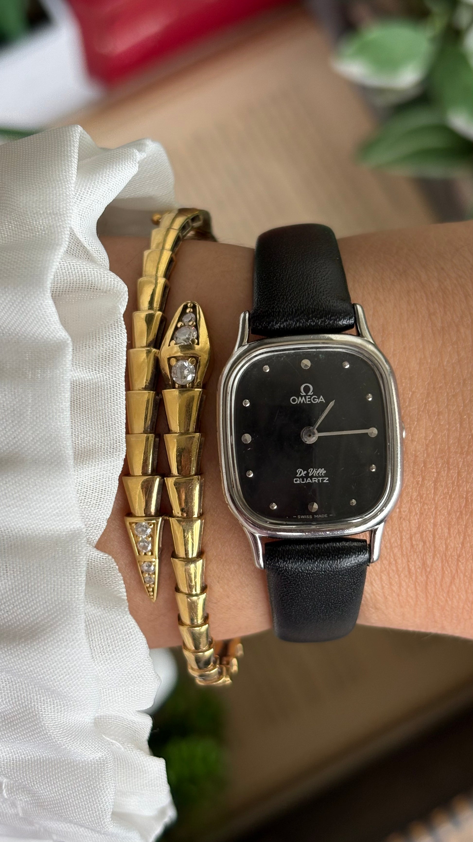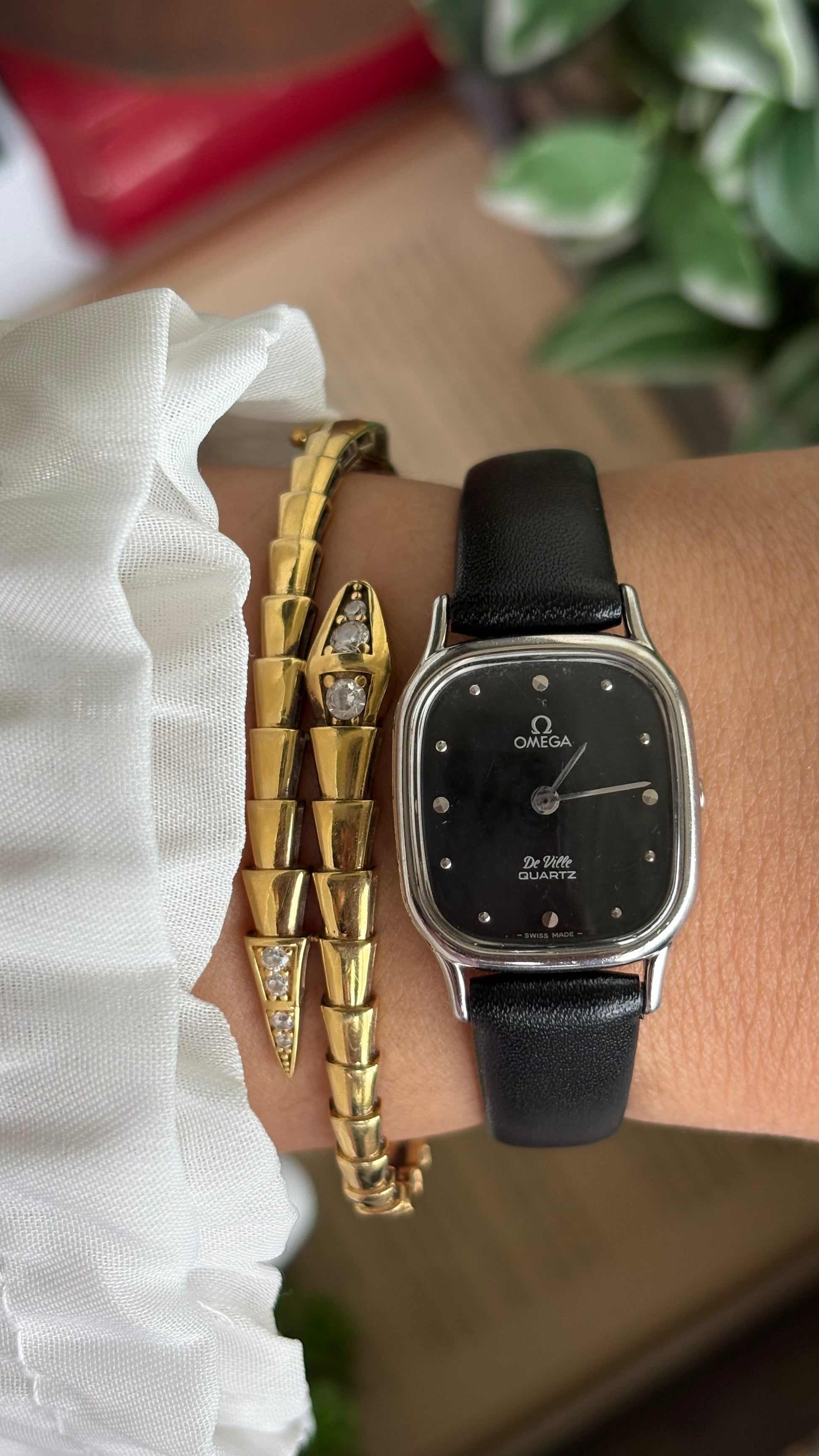 Vintage Omega De Ville Mini Tank Women’s Dress Watch in Black Leather Strap with Omega Box
