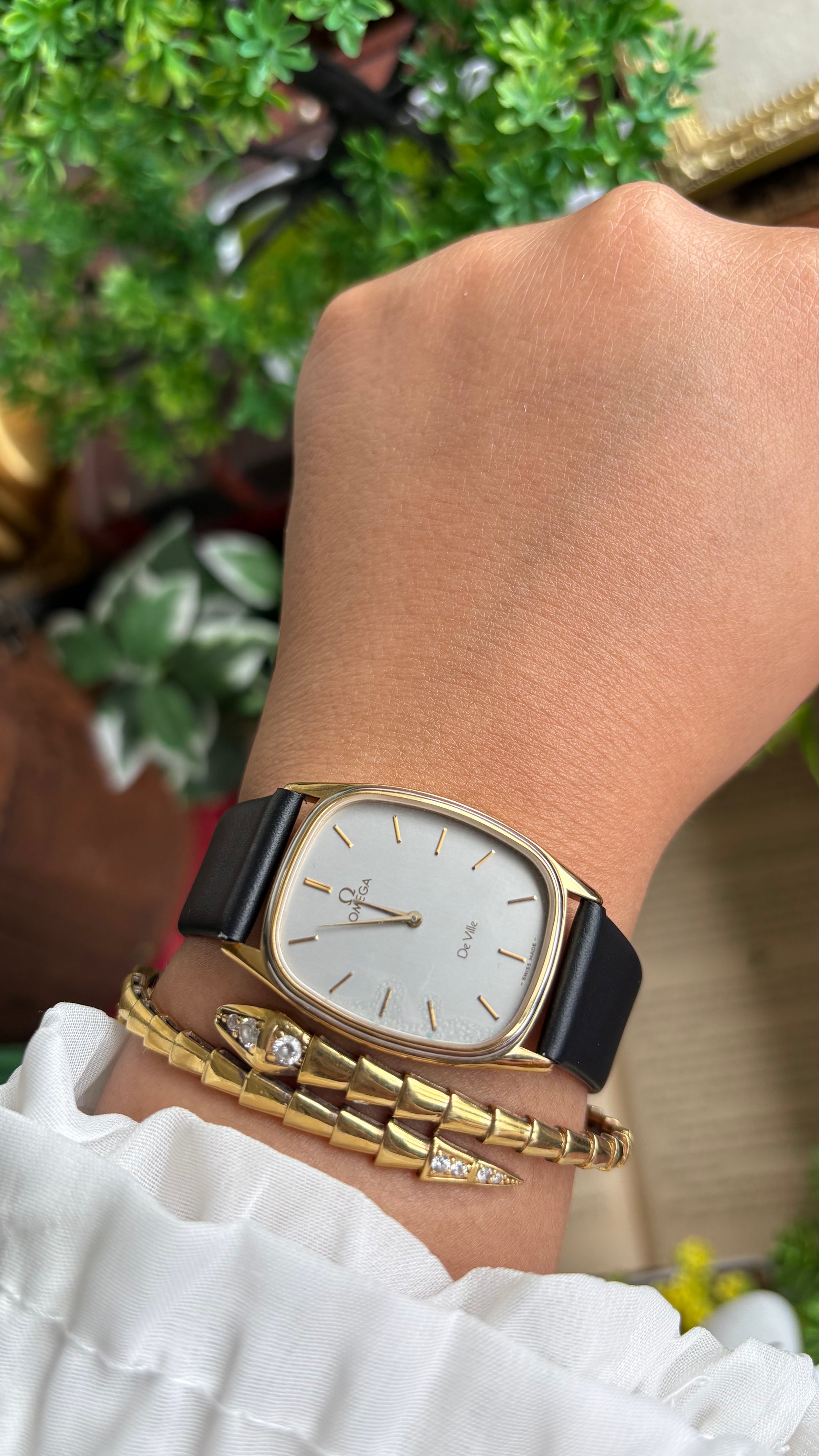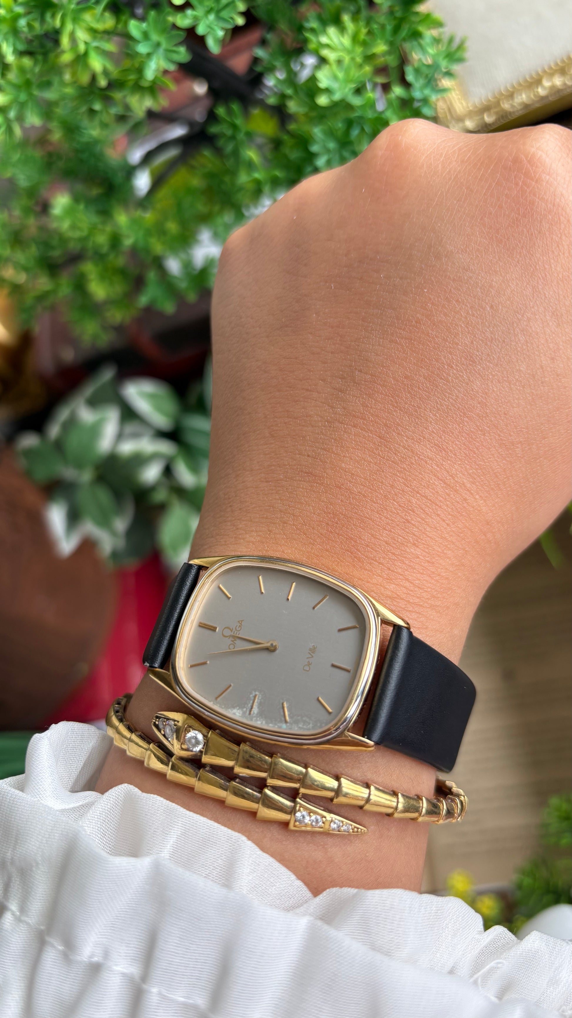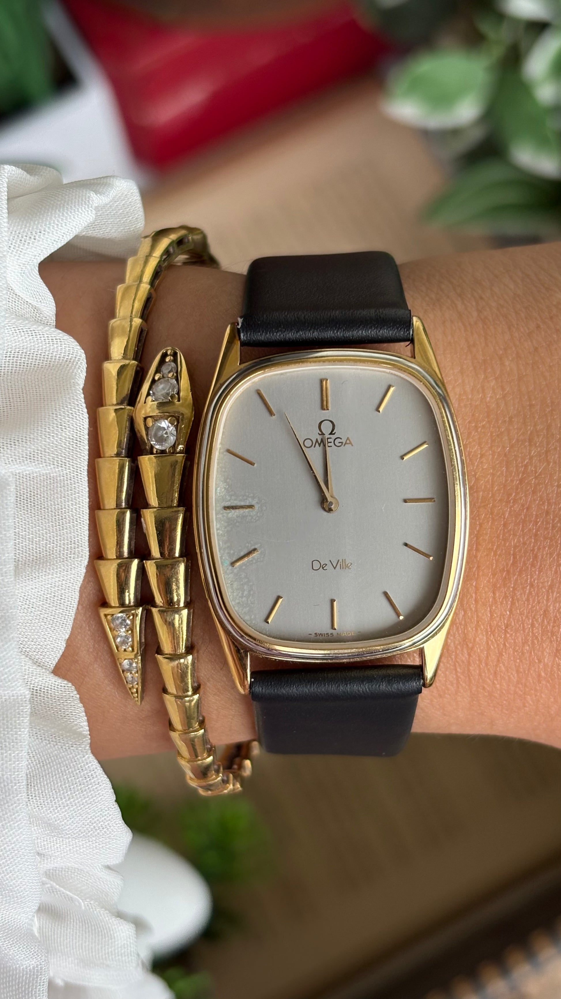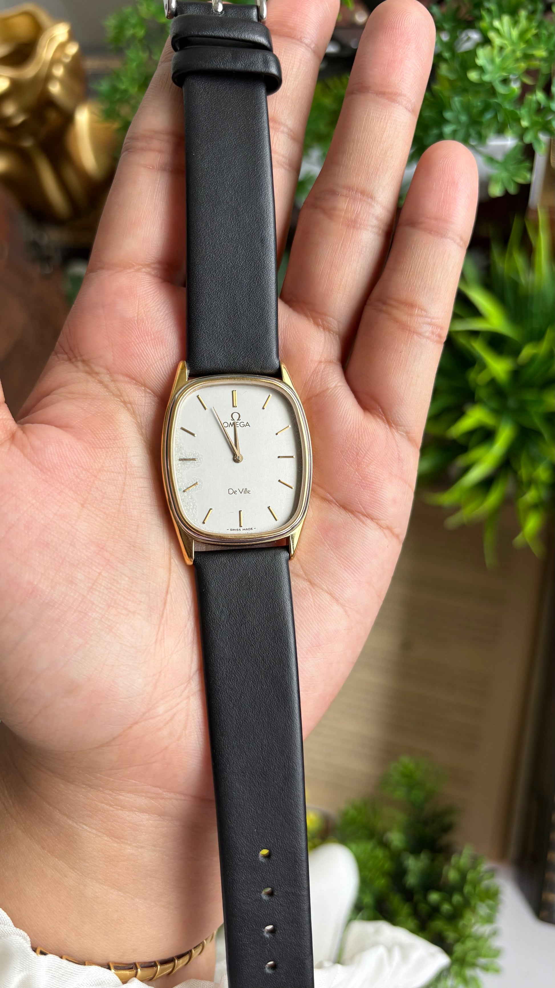 Vintage Omega De Ville Tank Men’s Dress Watch in Black Leather Strap with Omega Box