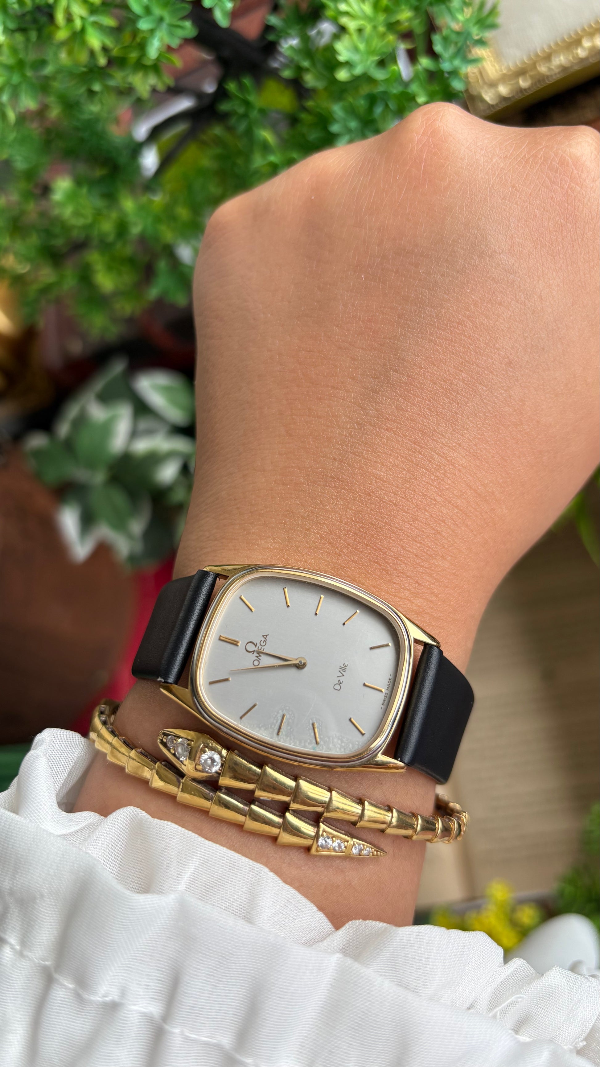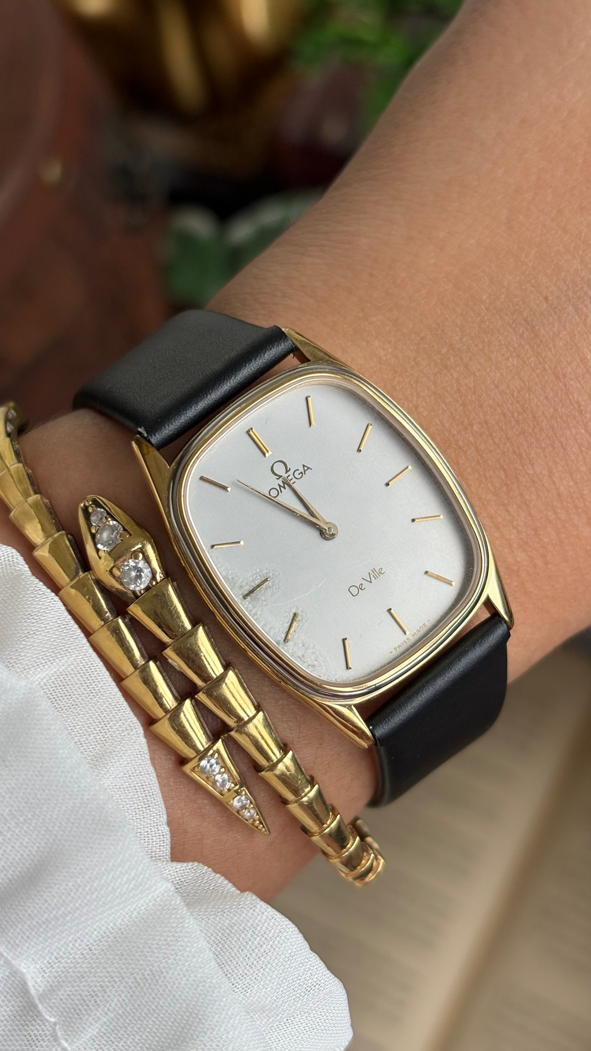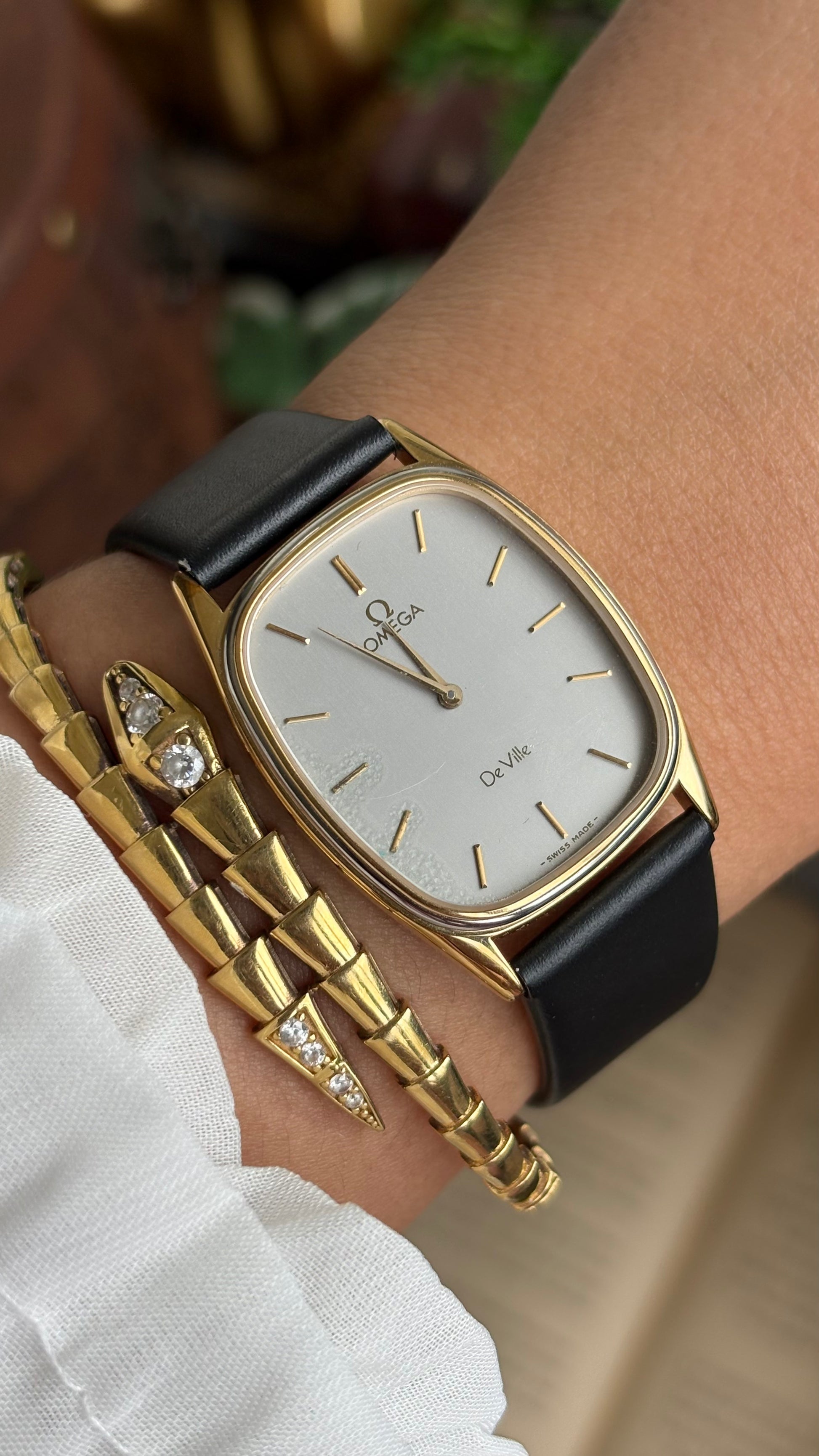 Vintage Omega De Ville Tank Men’s Dress Watch in Black Leather Strap with Omega Box