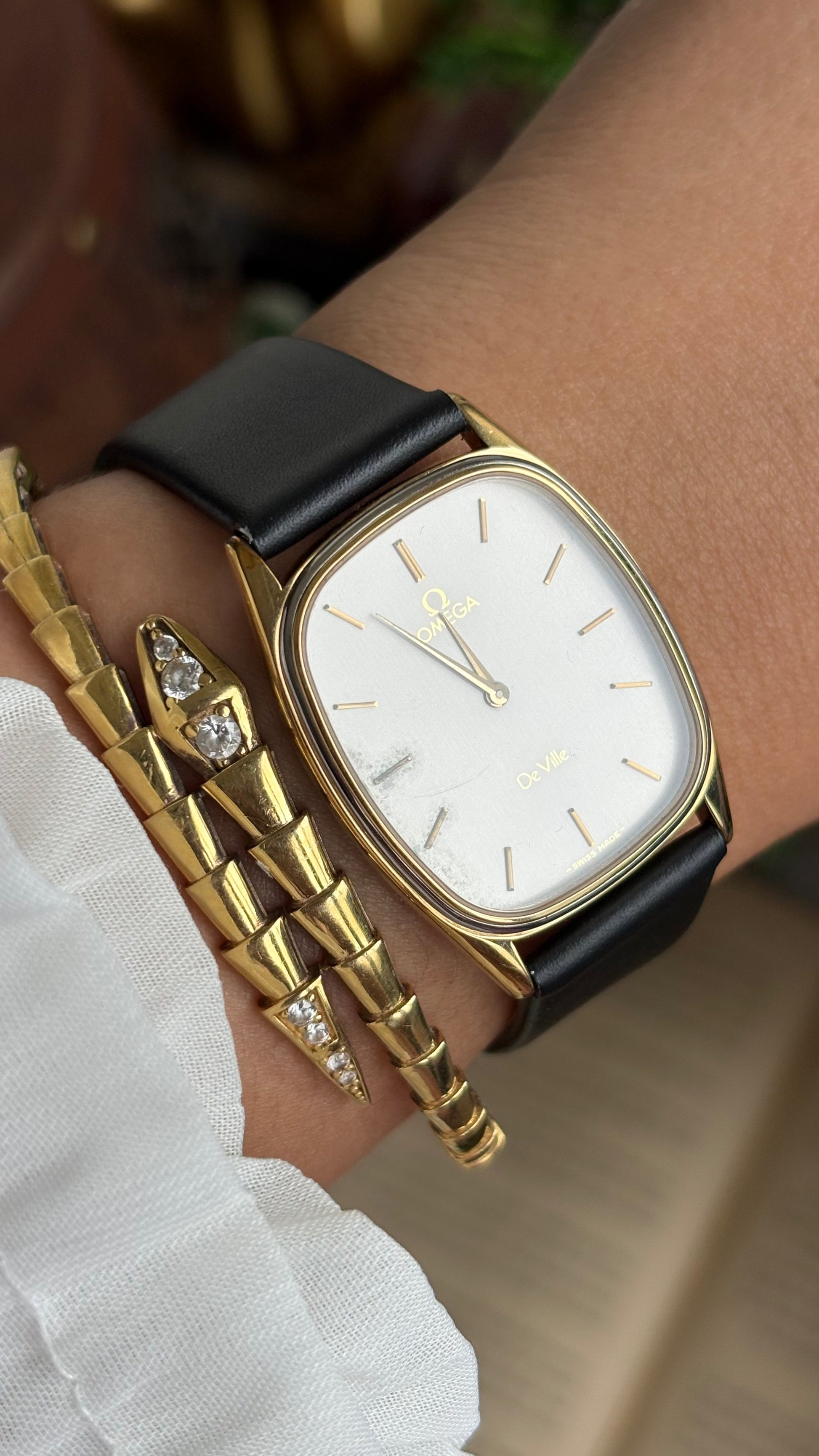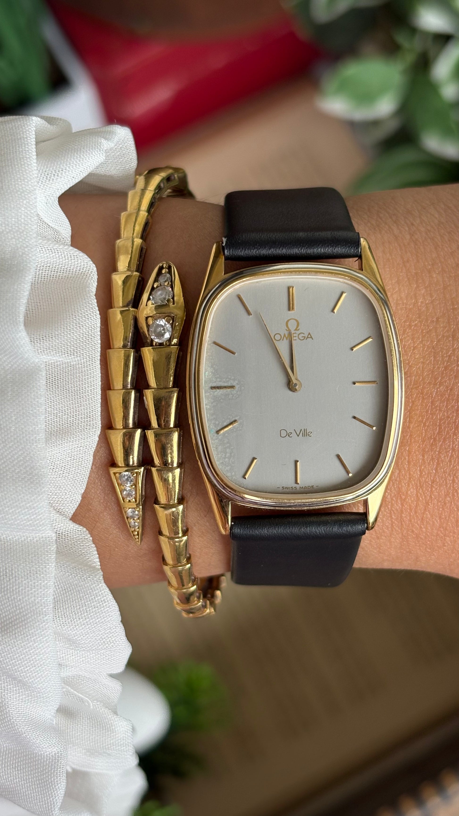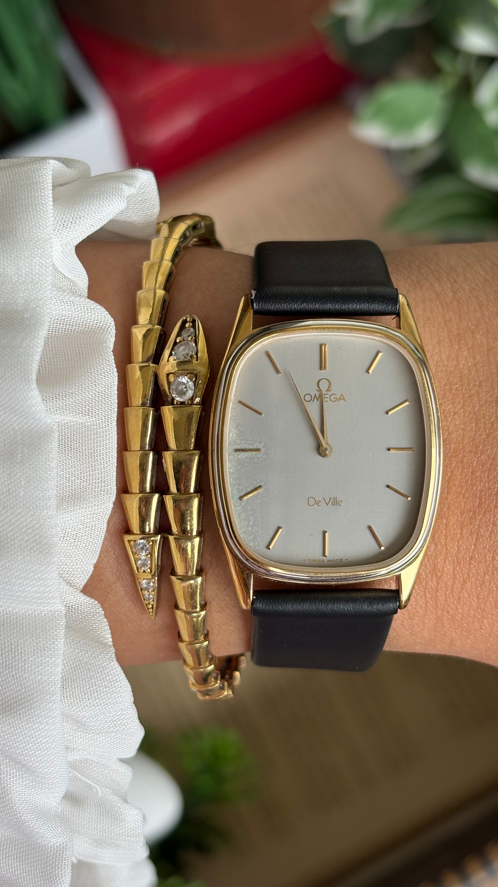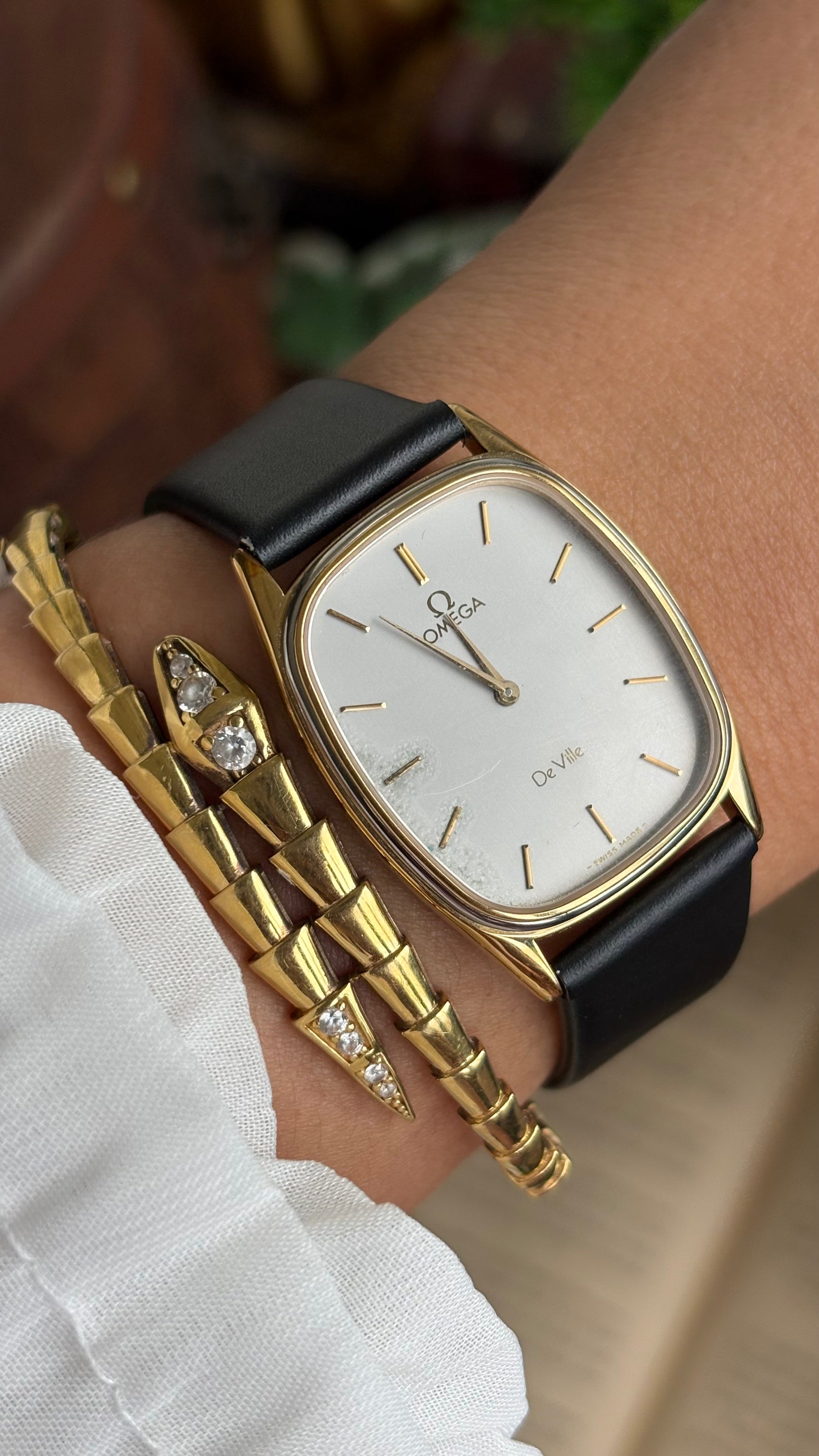Vintage Omega De Ville Tank Men’s Dress Watch in Black Leather Strap with Omega Box
