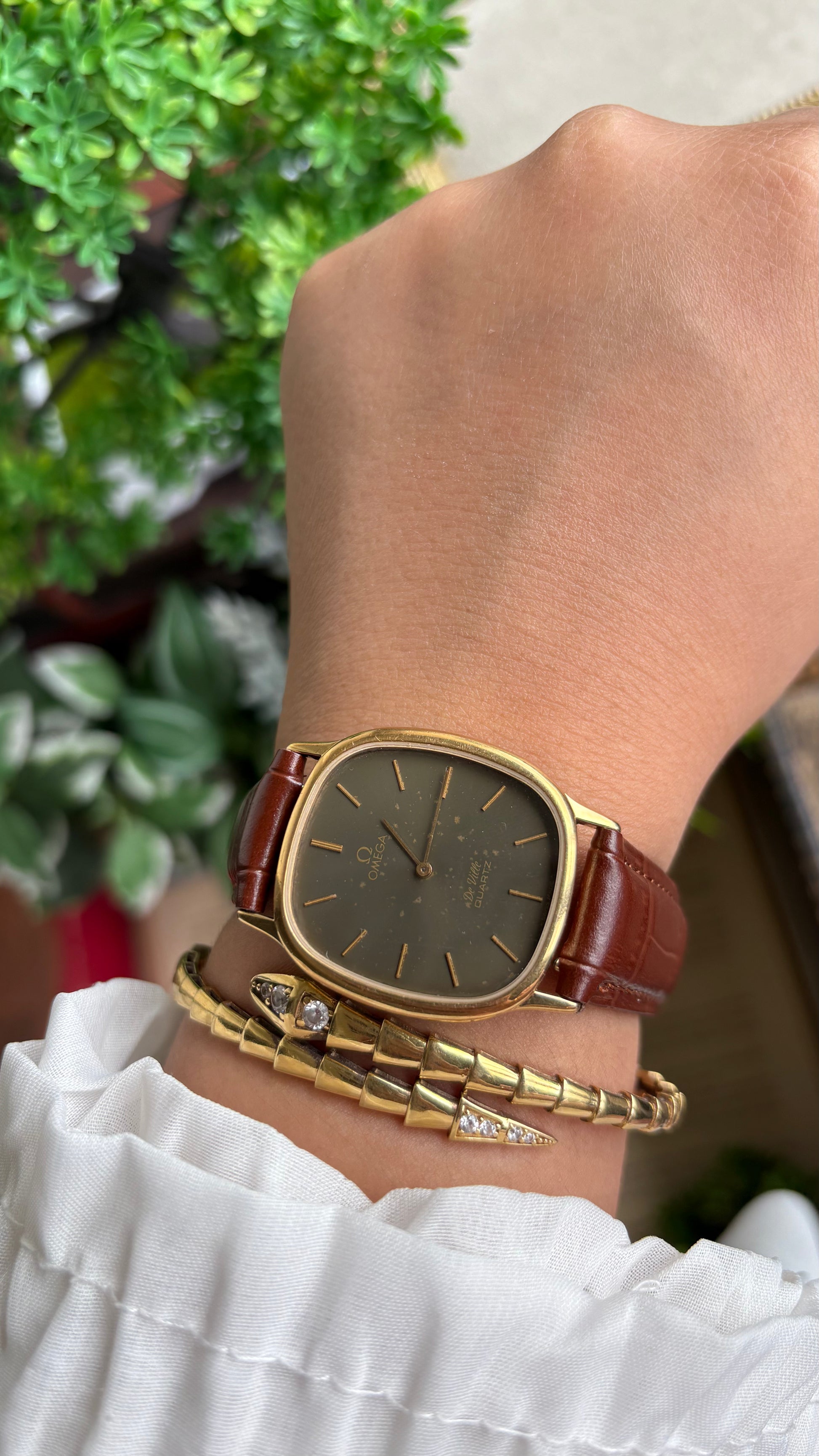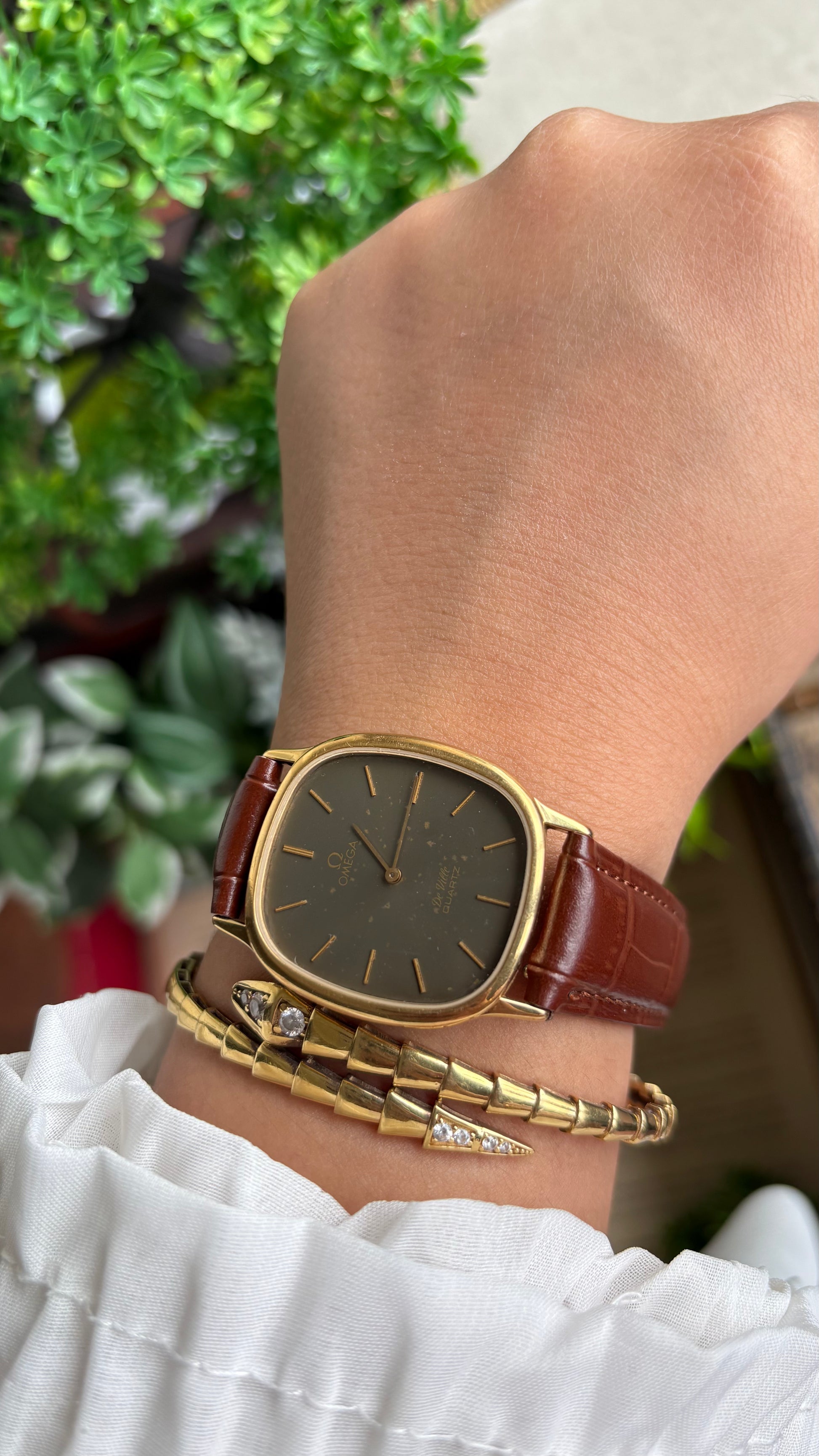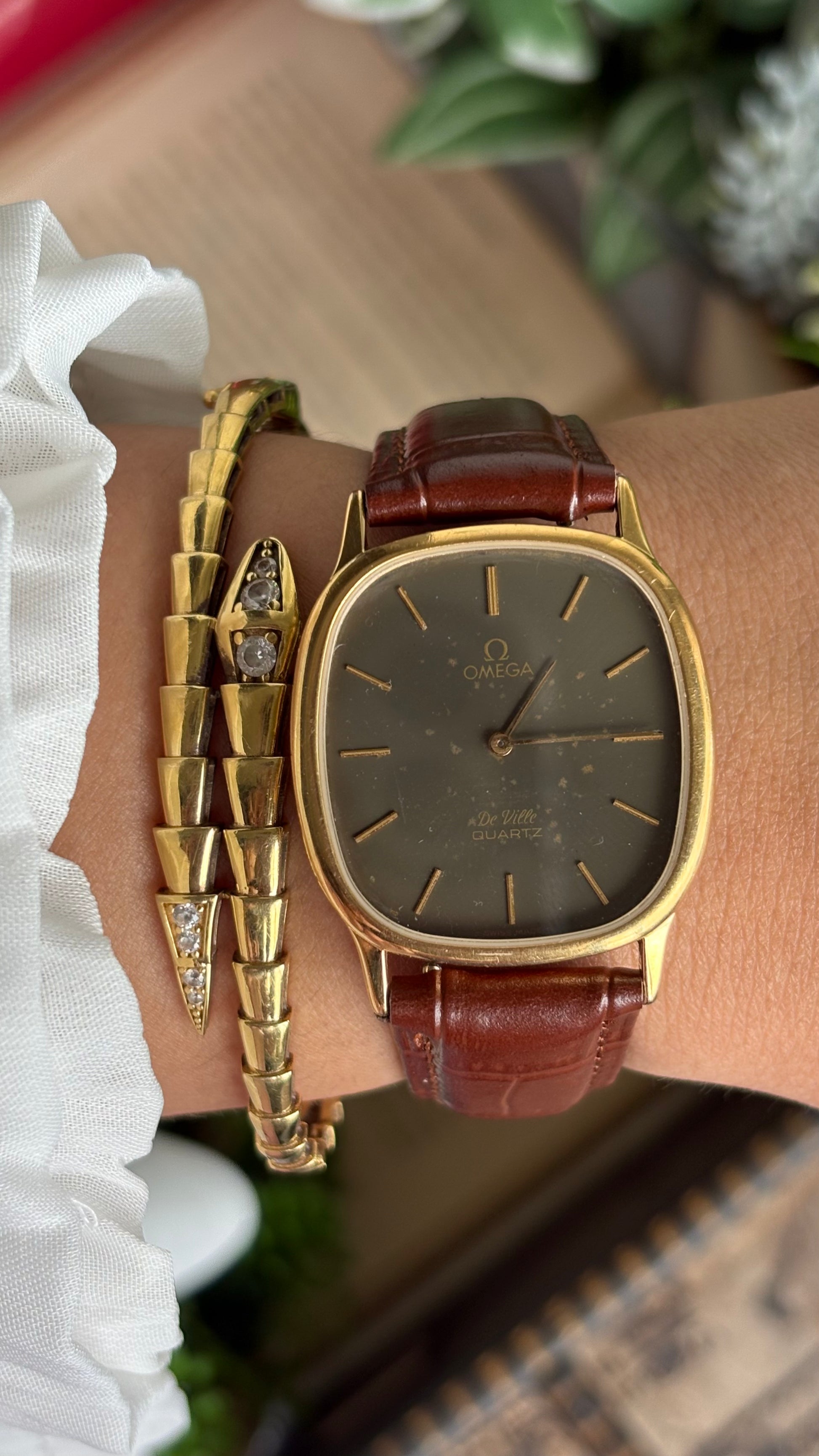 Vintage Omega De Ville Tank Men’s Dress Watch in Brown Leather Strap Black Grey Dial with Omega Box