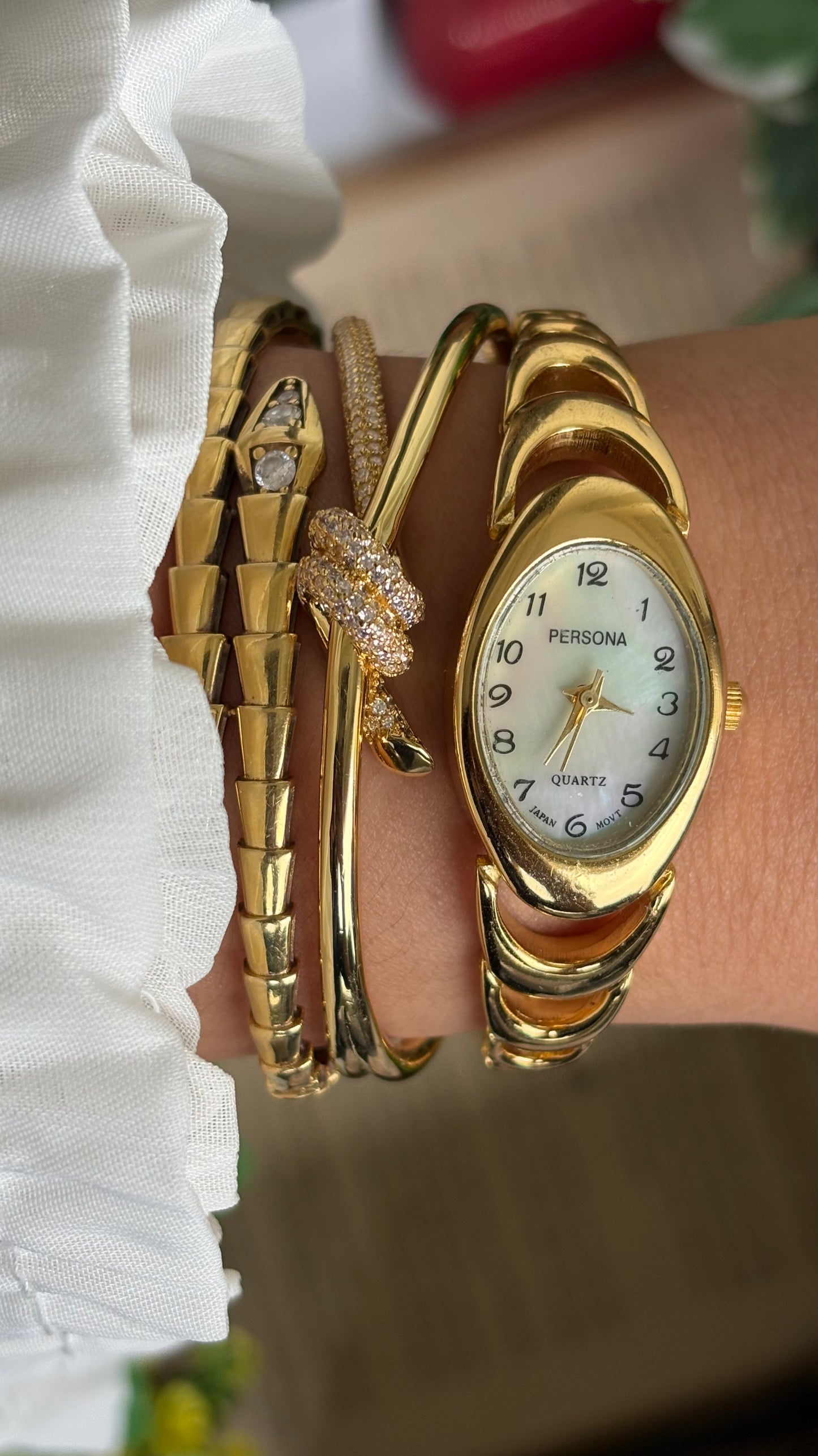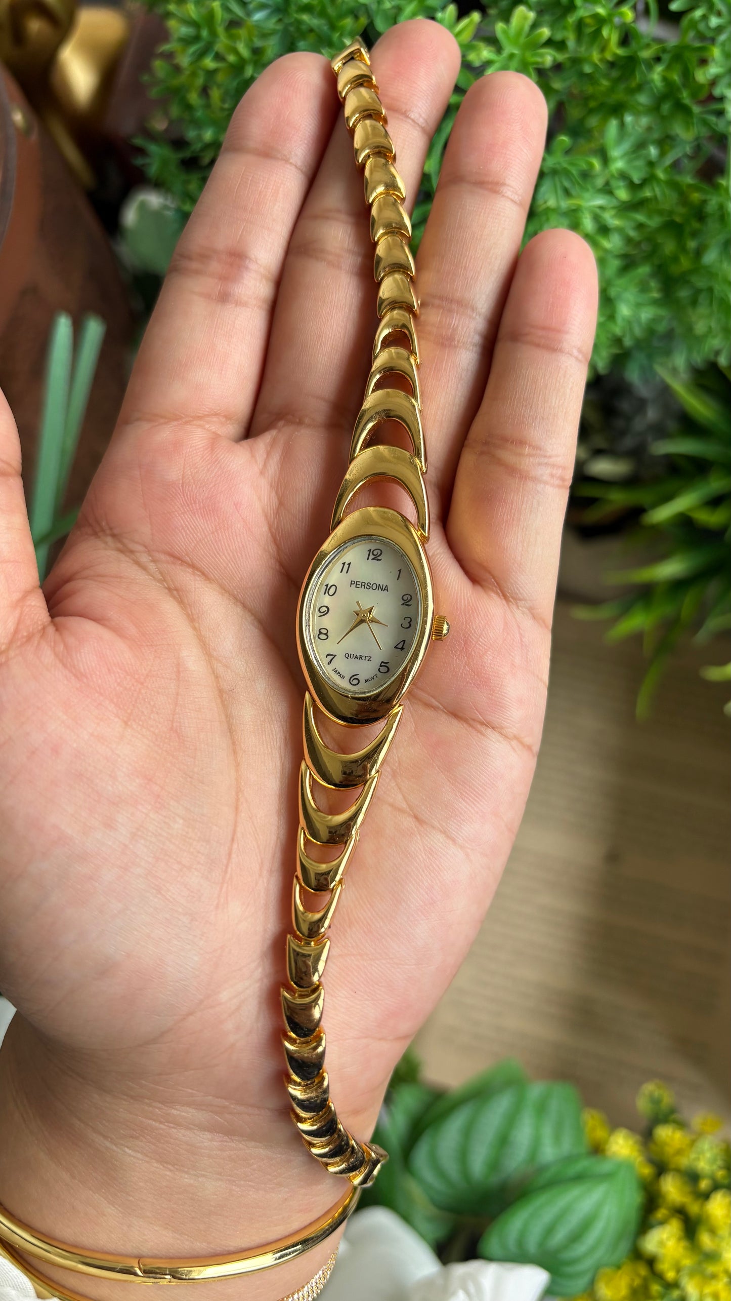 Vintage Persona Watch in Gold Tone Oval Face Pearl Dial