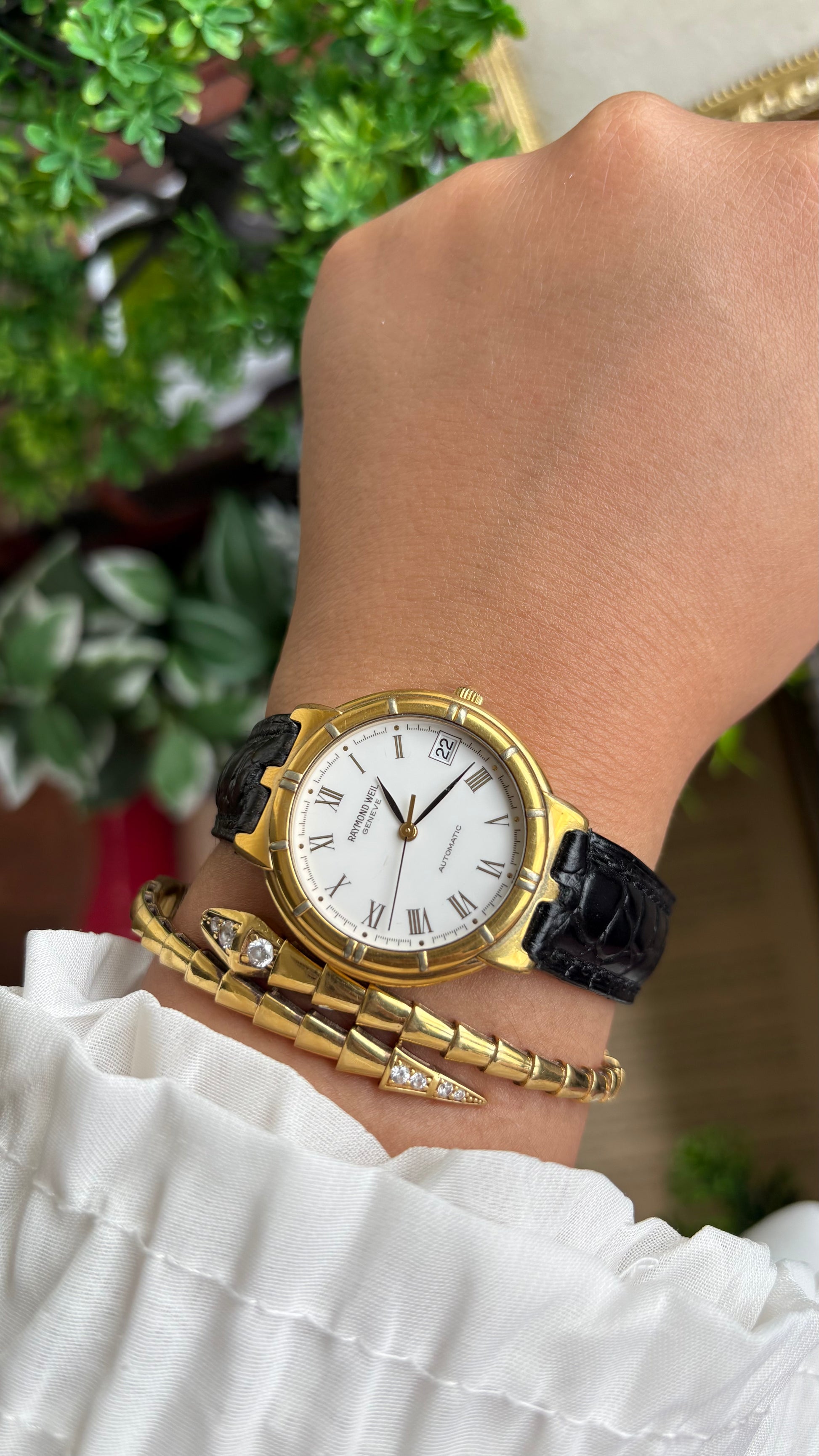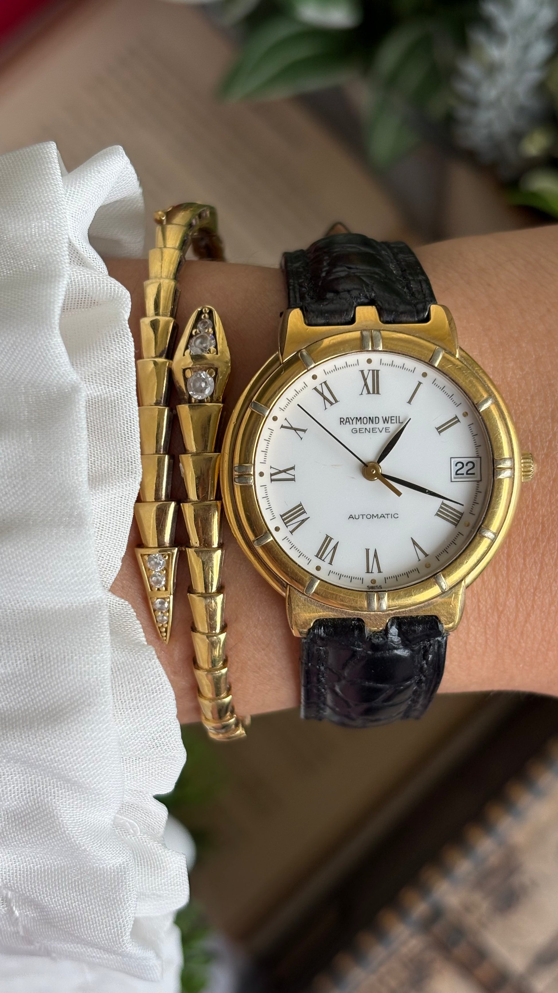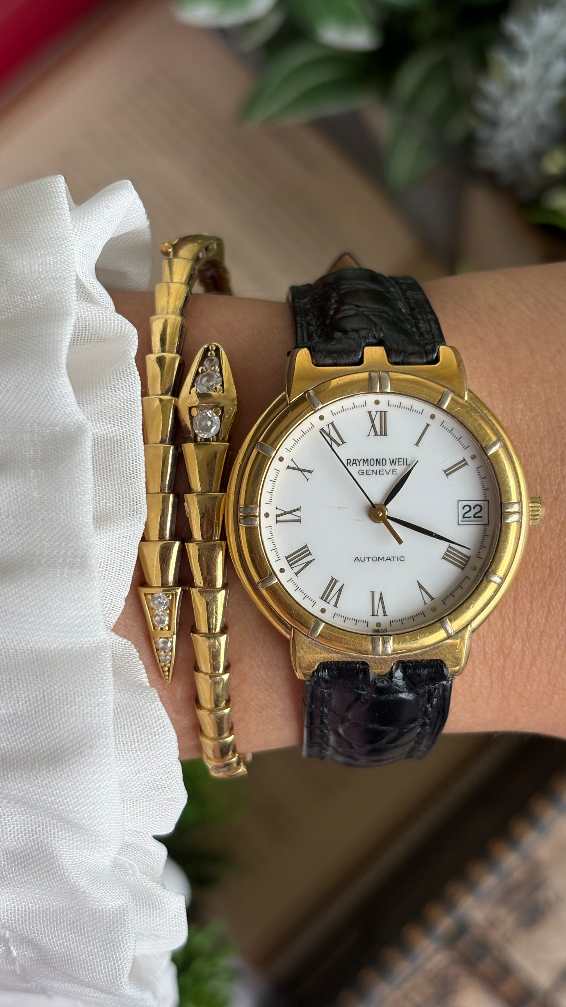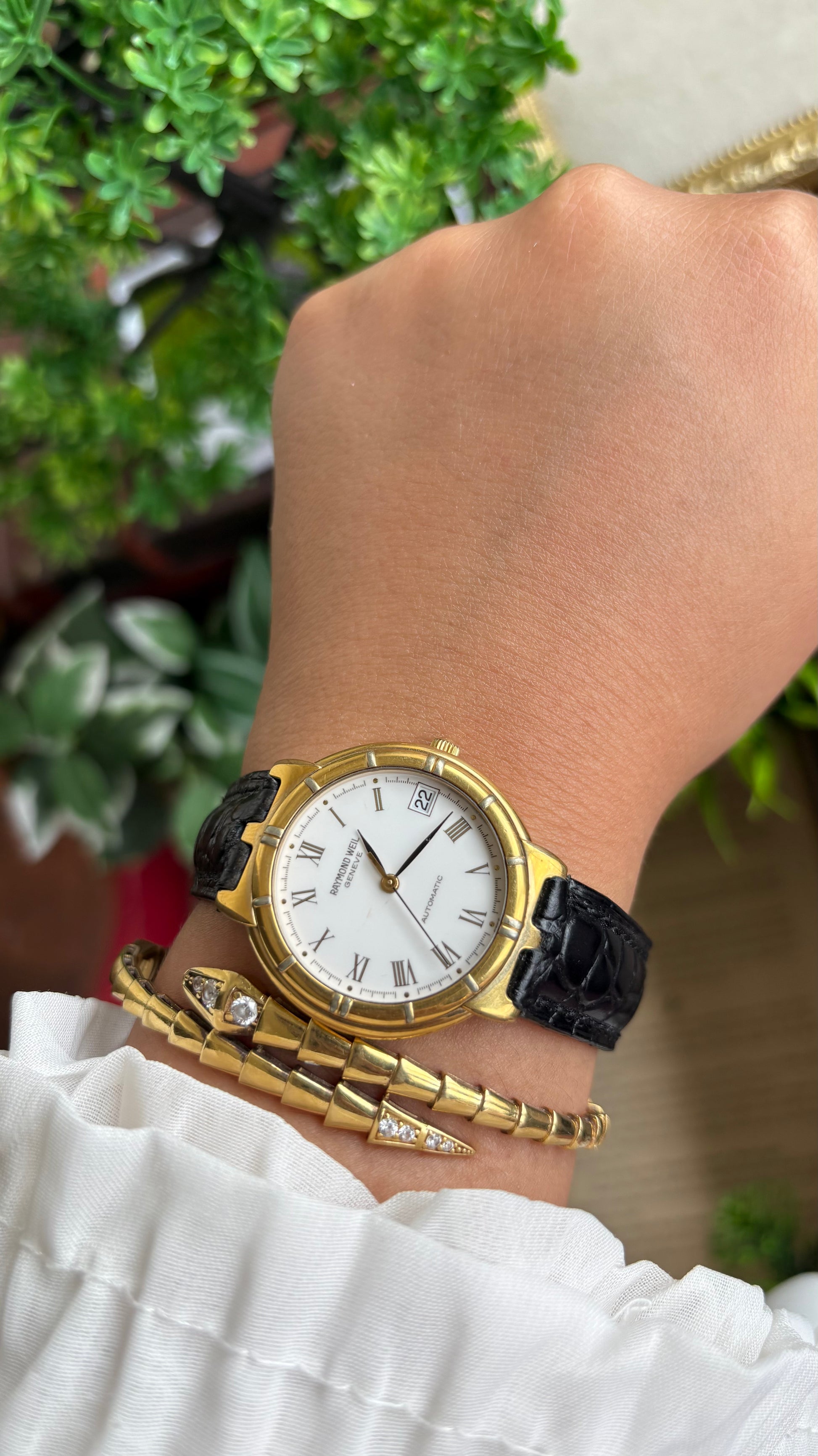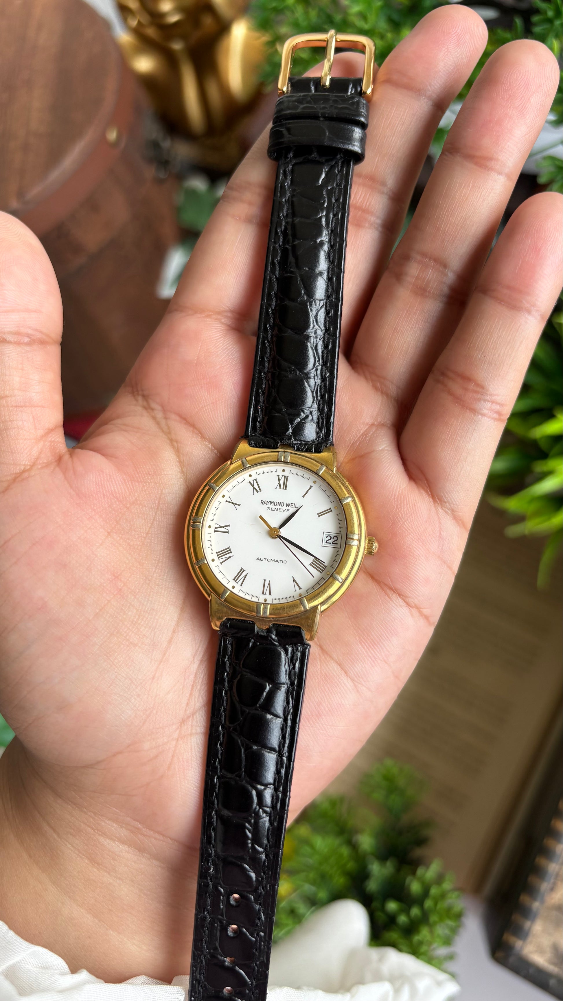 Vintage Raymond Weil Automatic Men’s Dress Watch in Black Leather Strap with Window Date Roman Dial