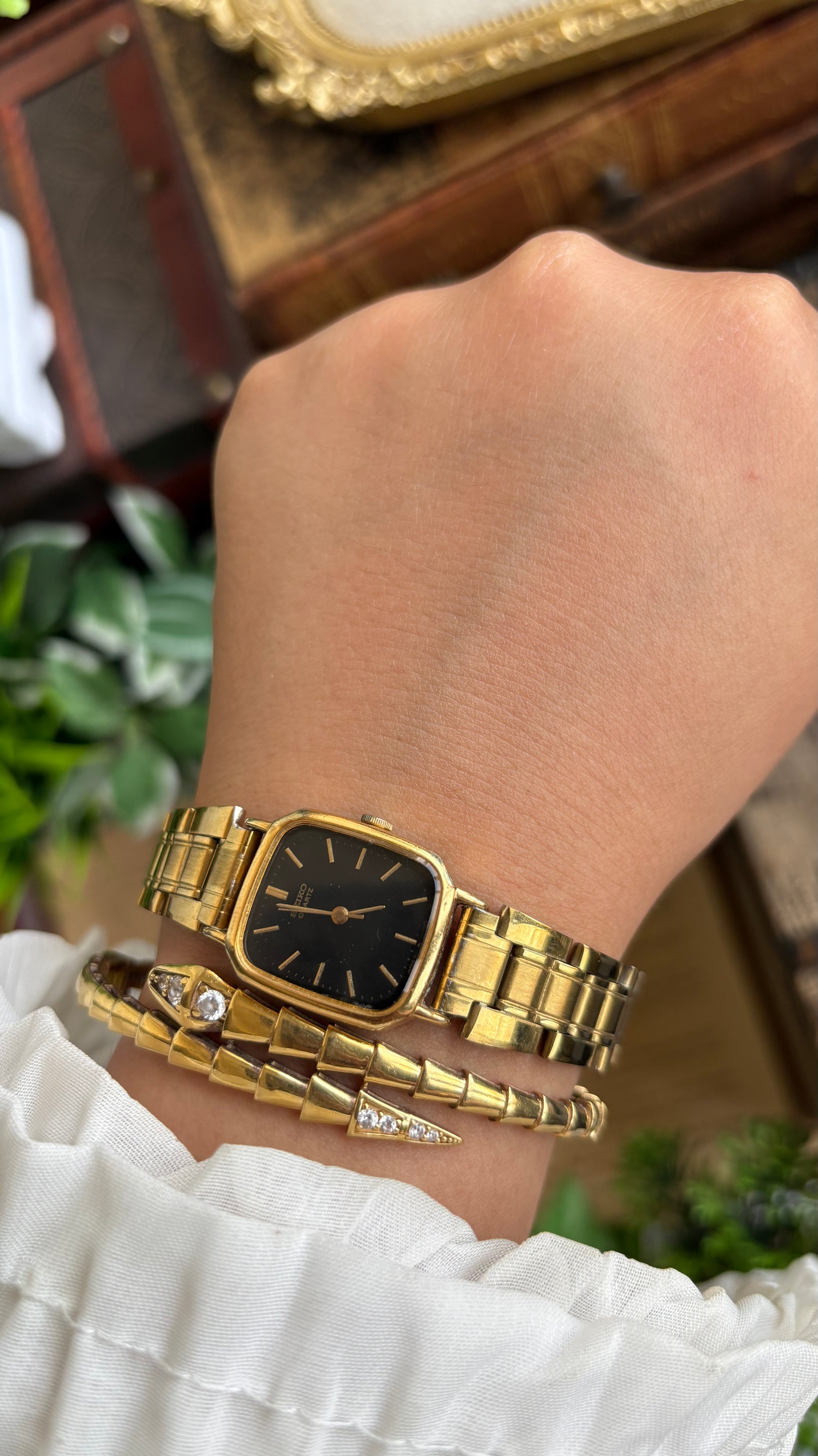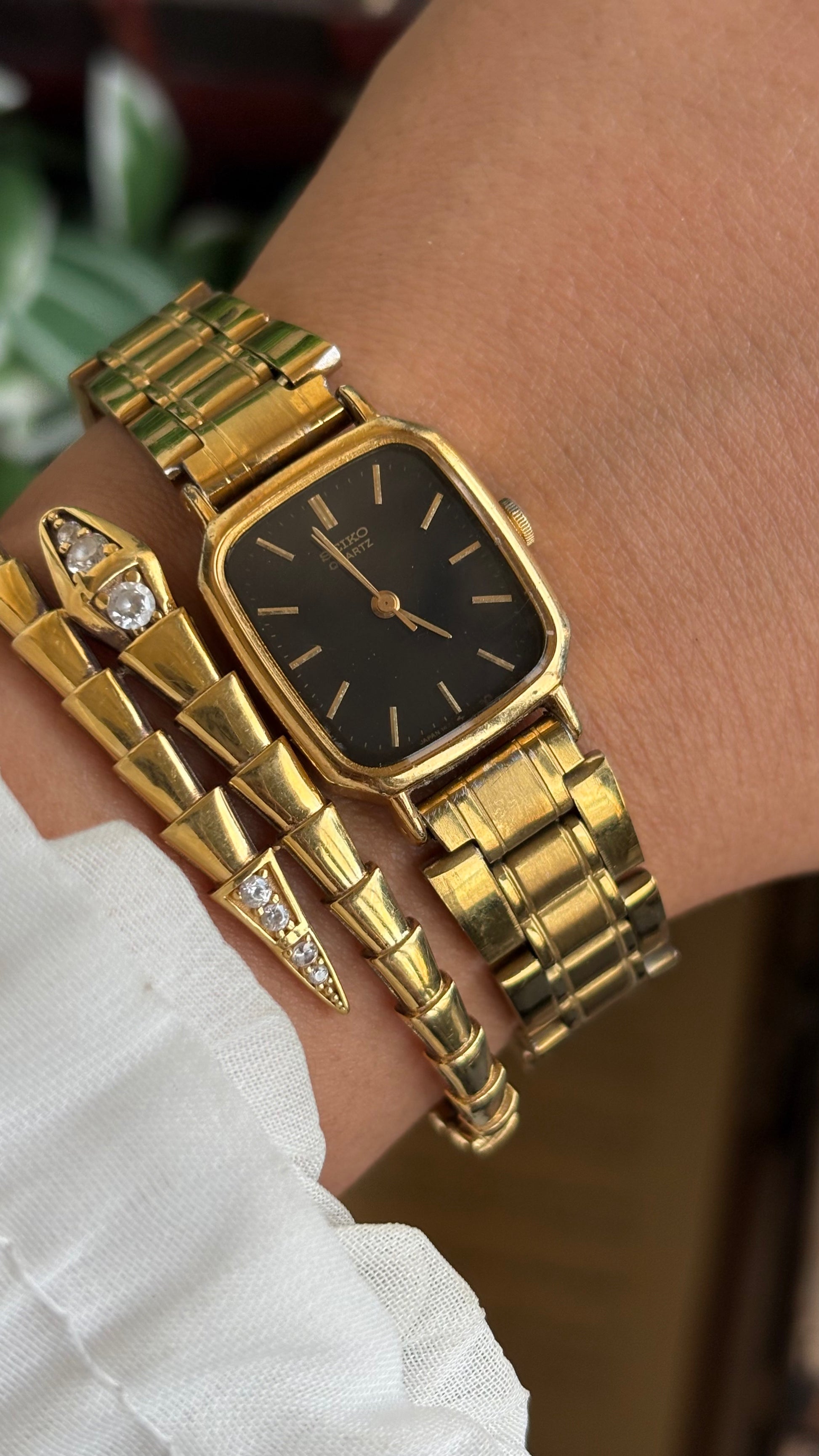 Vintage Seiko Japan Watch in Gold Tone Black Dial Square Face