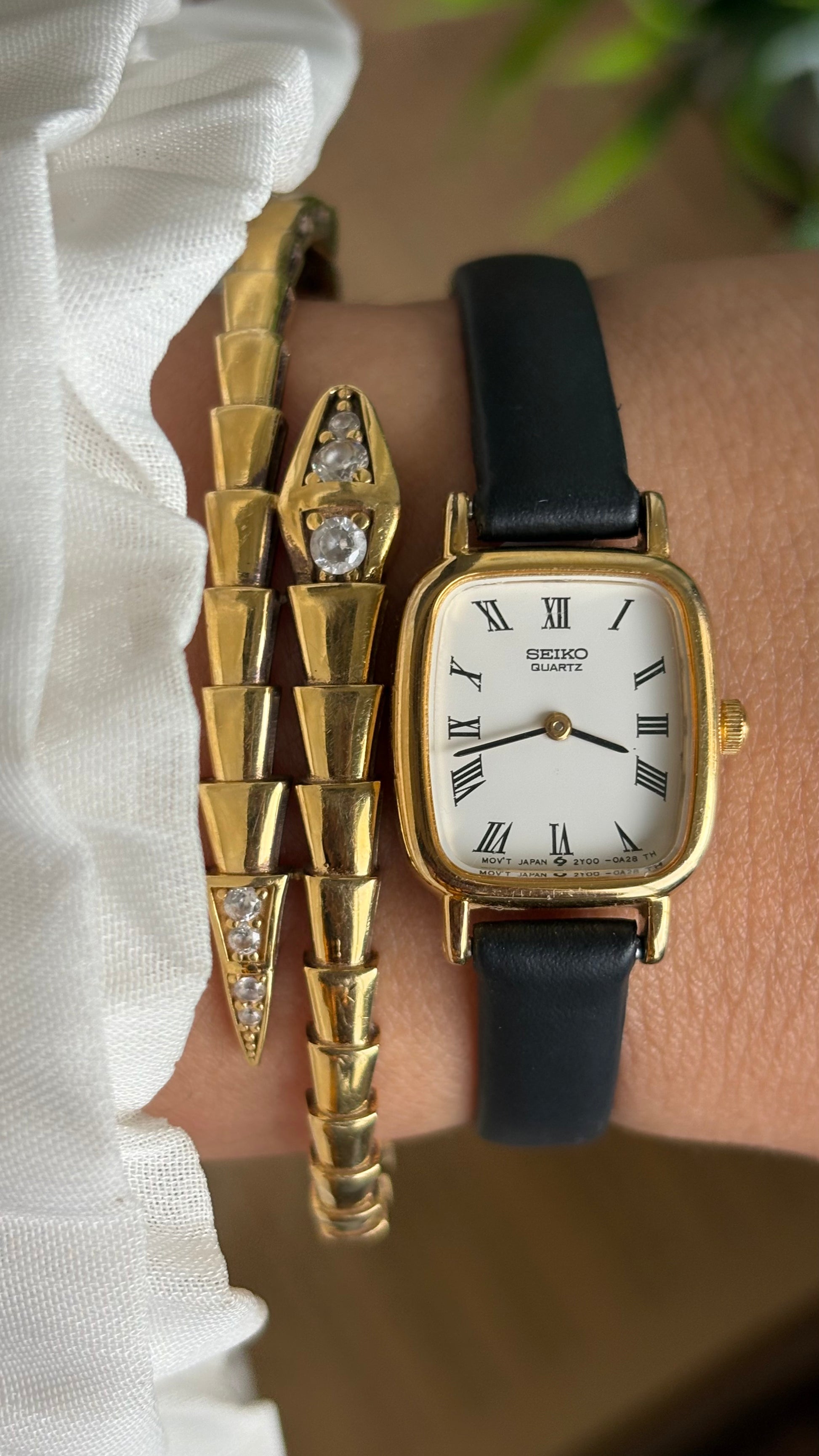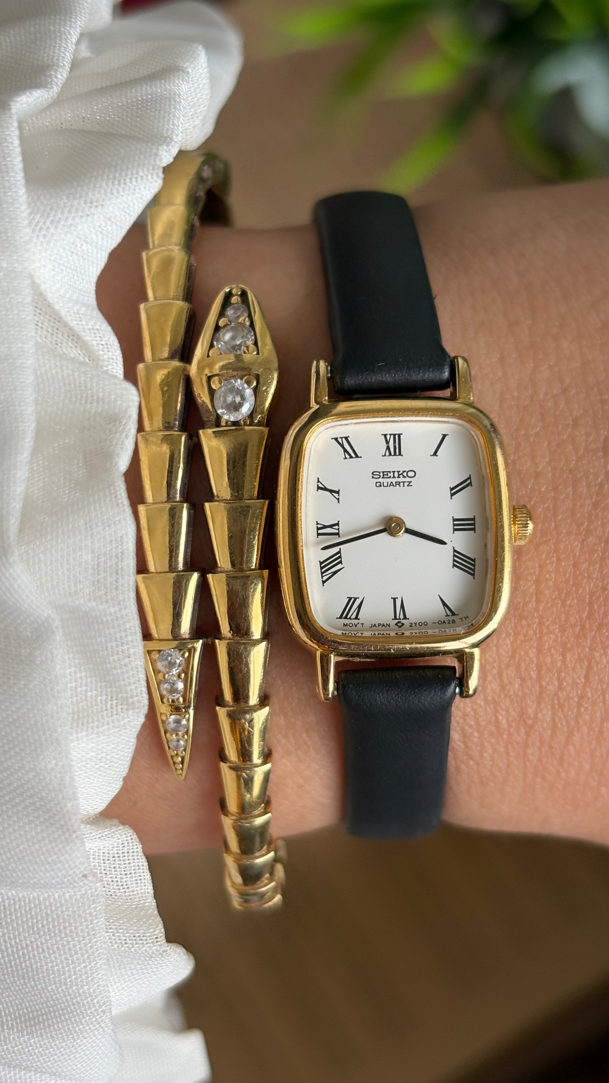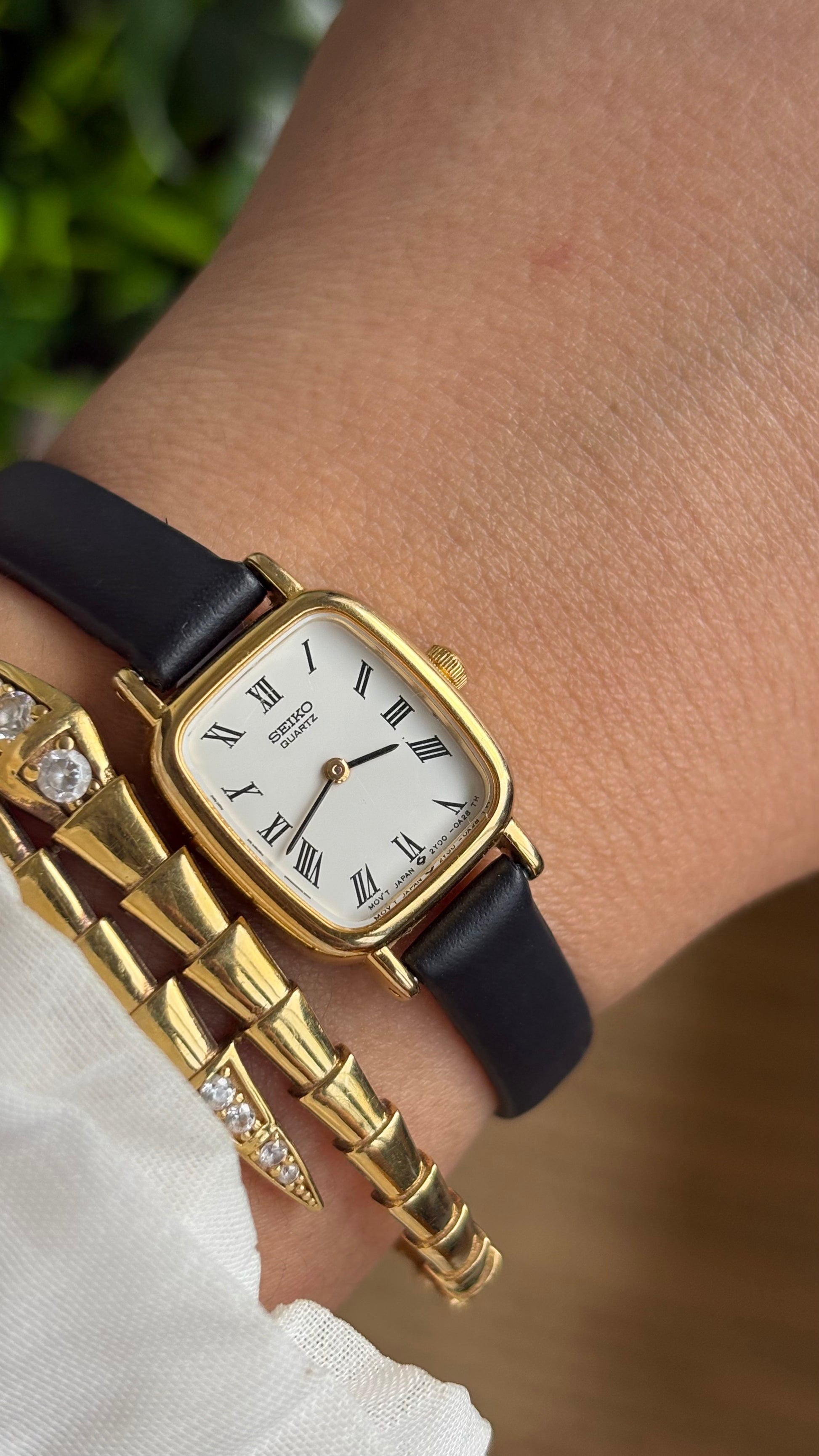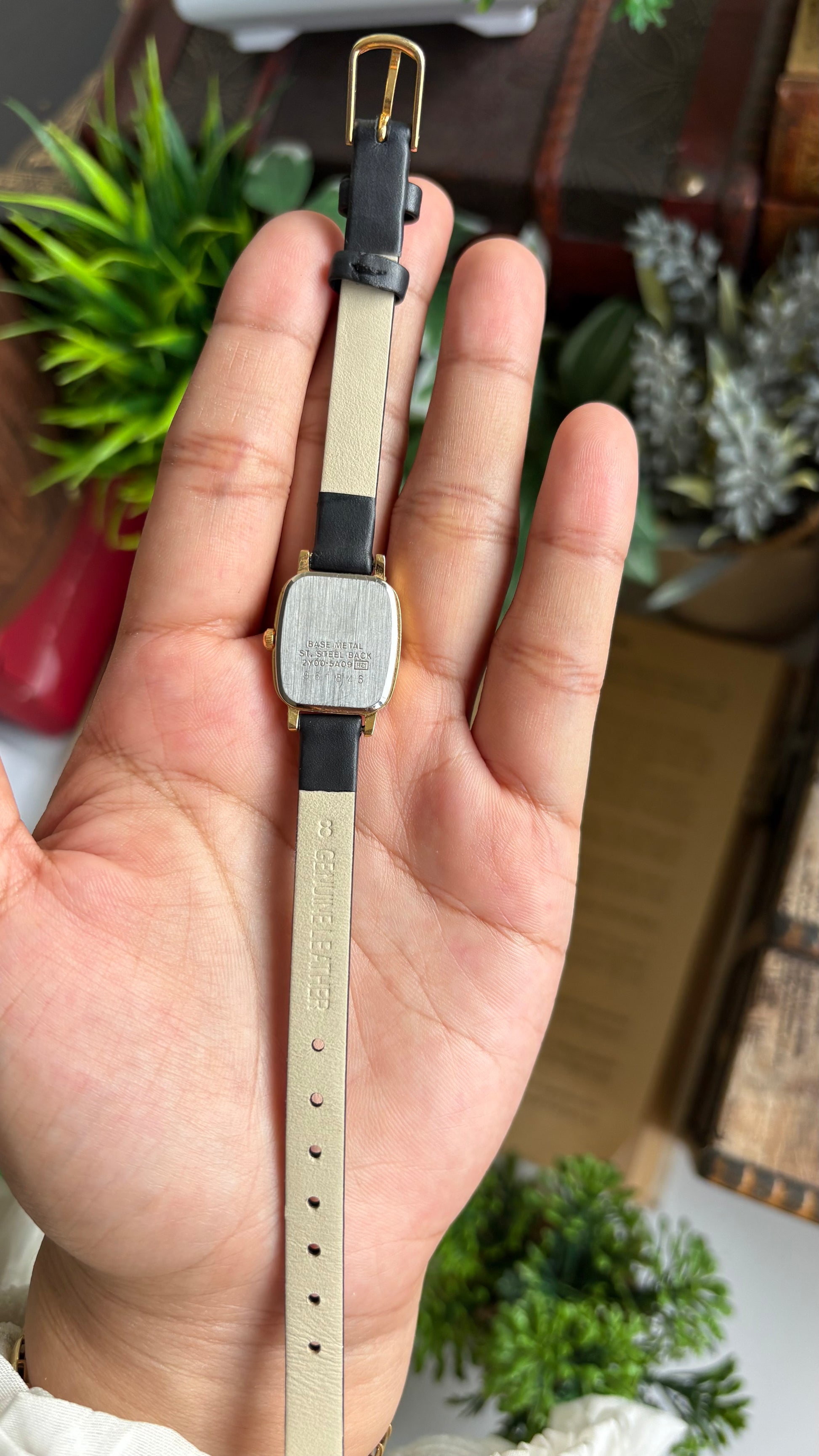 Vintage Seiko Mini Tank Watch in Black Leather Strap