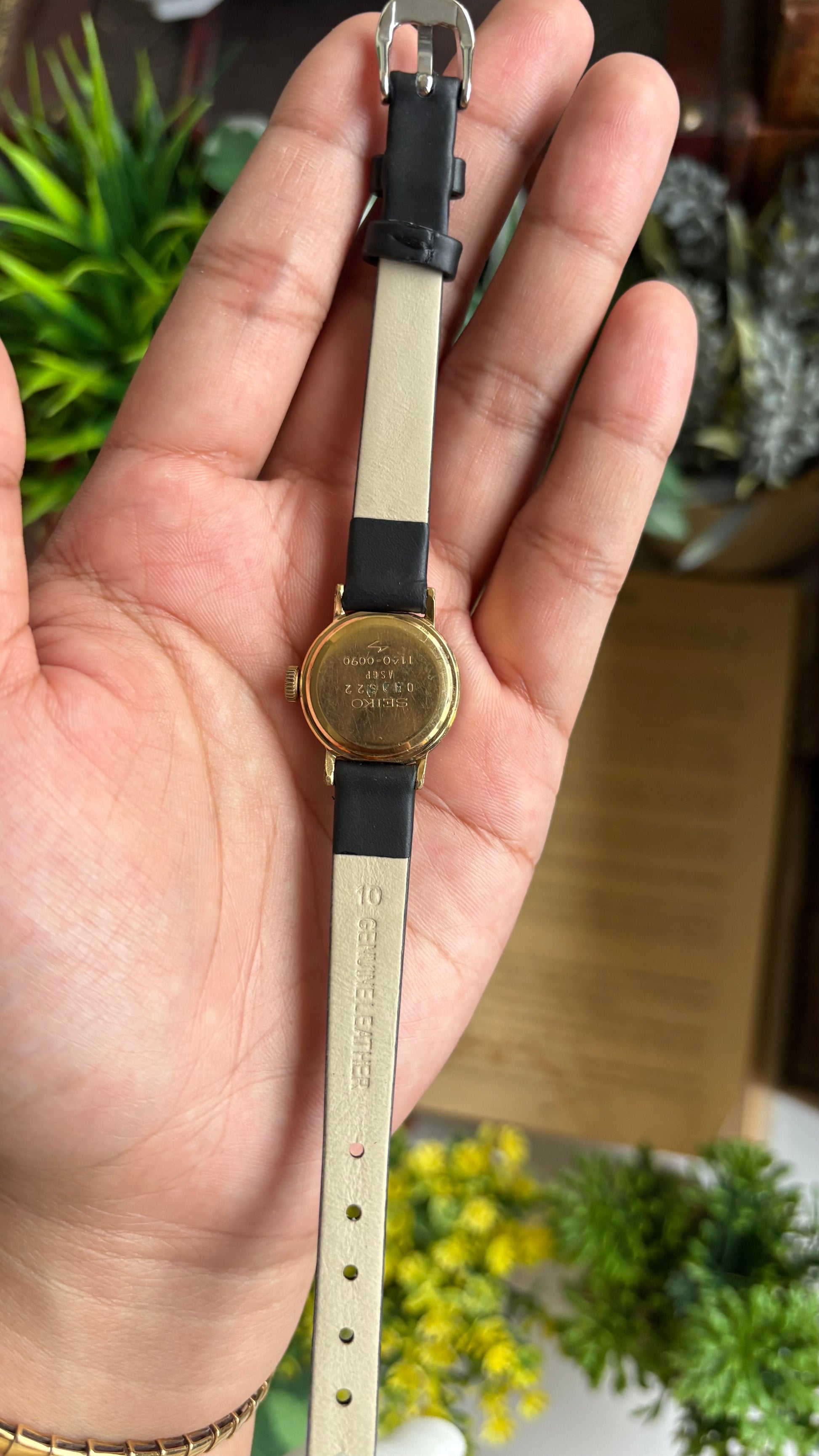 Vintage Seiko Watch in Black Leather Strap Roman Dial