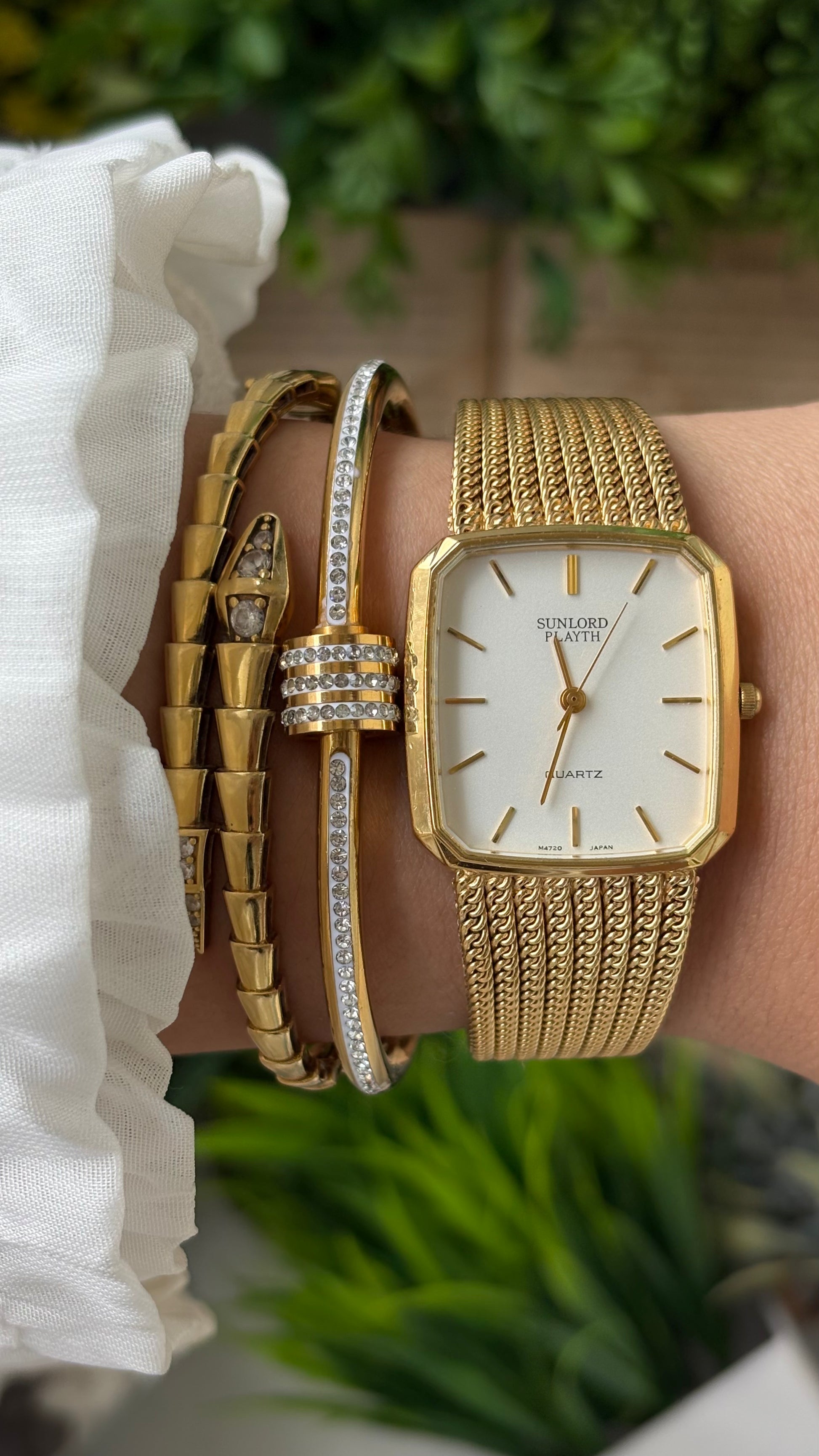 Vintage Sunlord Playth Tank Dress Watch in Gold Tone Quartz #00624