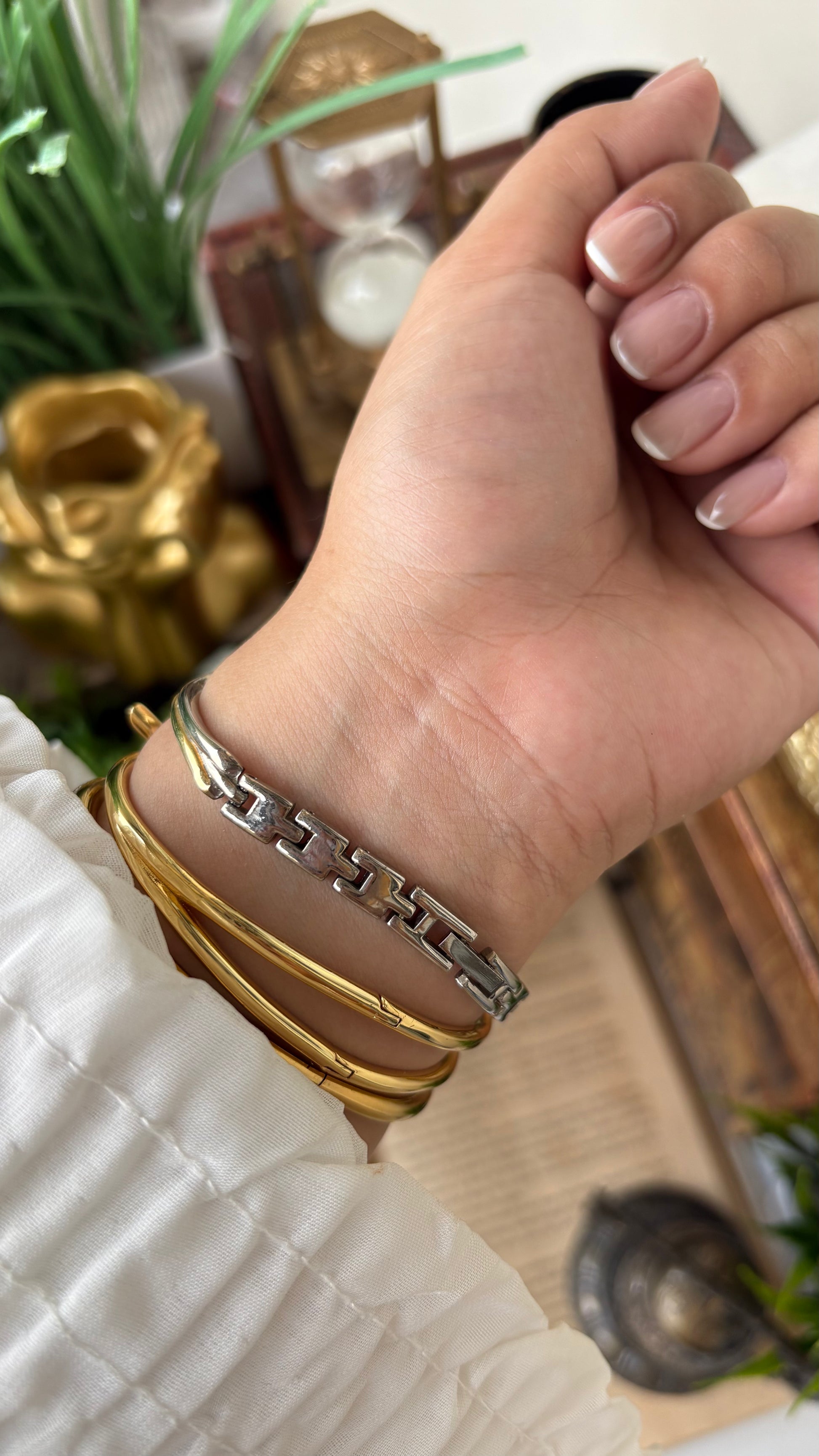 Vintage SunRise Elegant Semi Bangle Watch in Two-Tone Quartz Rhinestone Dial