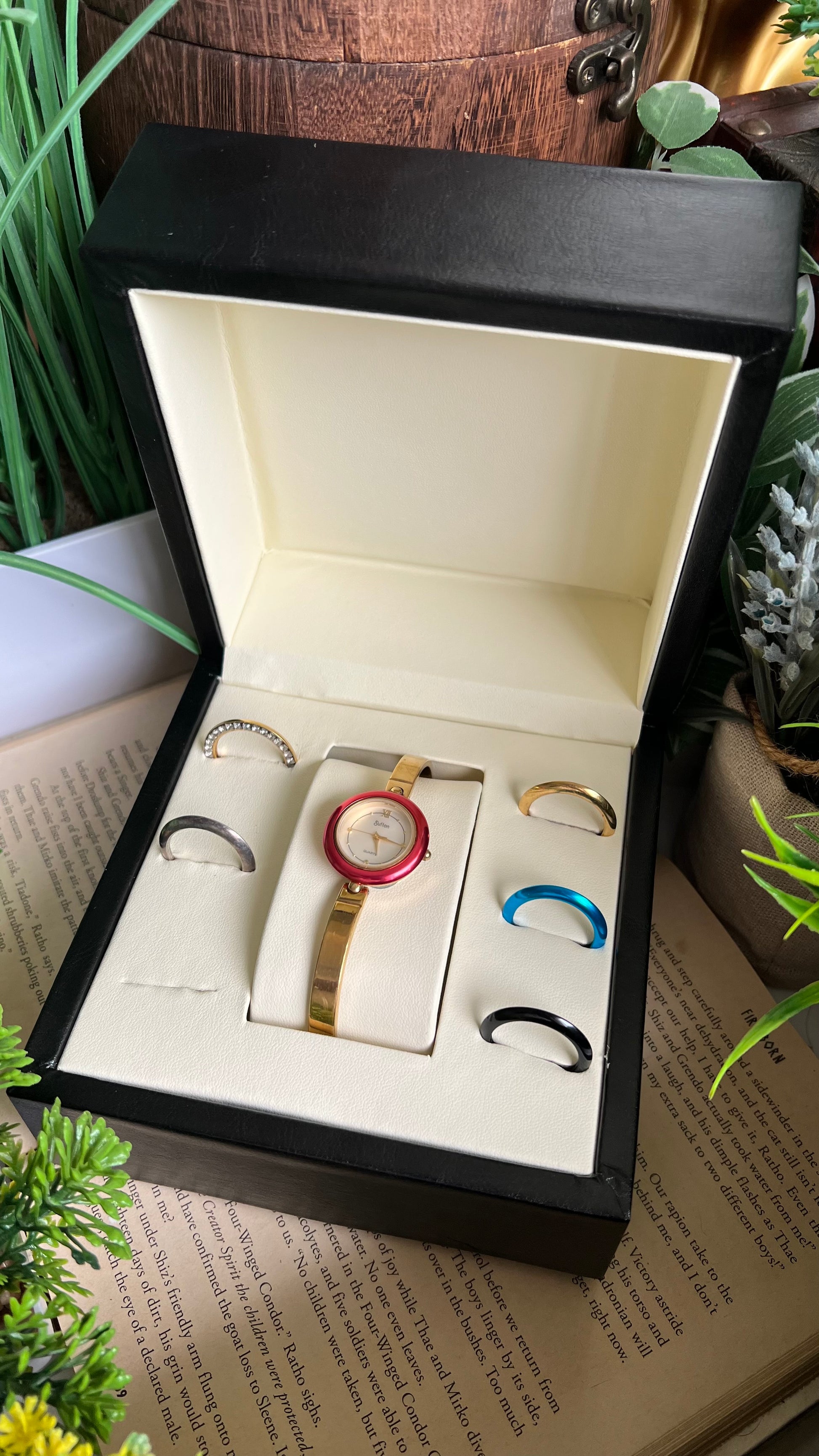 Vintage Sutton Interchangeable Bezel Set Watch in Gold Tone