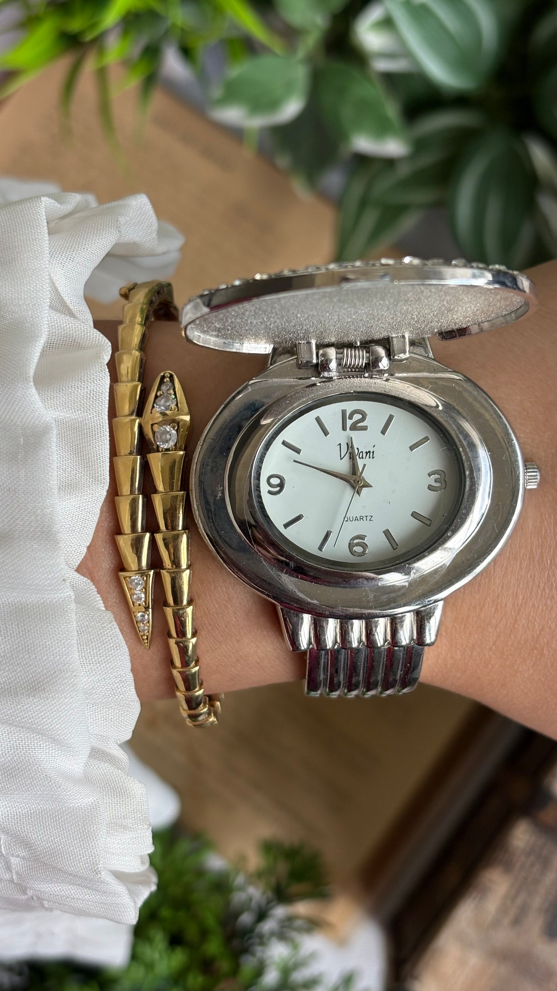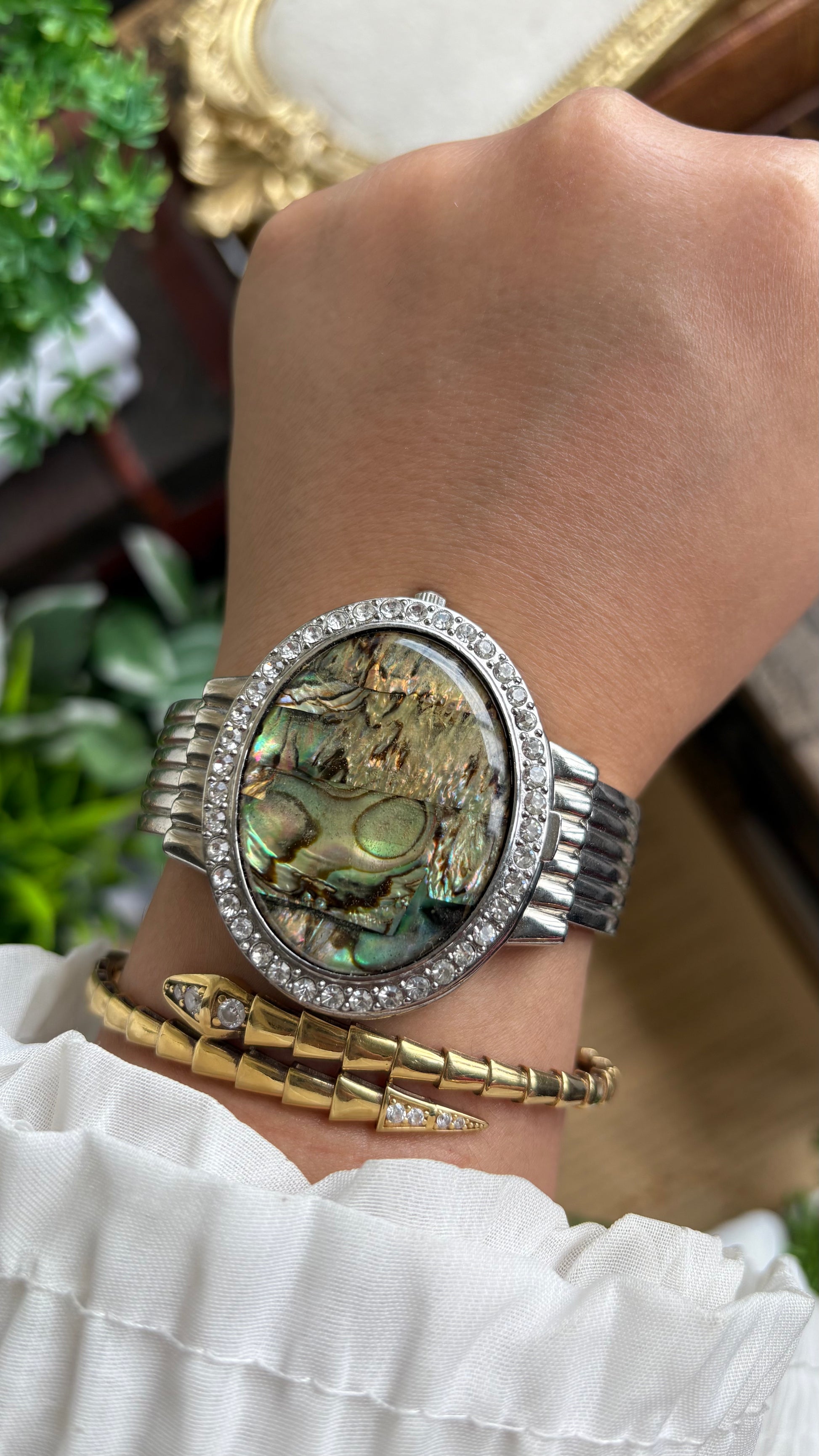 Vintage Vivani Abalone Shell Rare Peekaboo Watch in Silver Tone